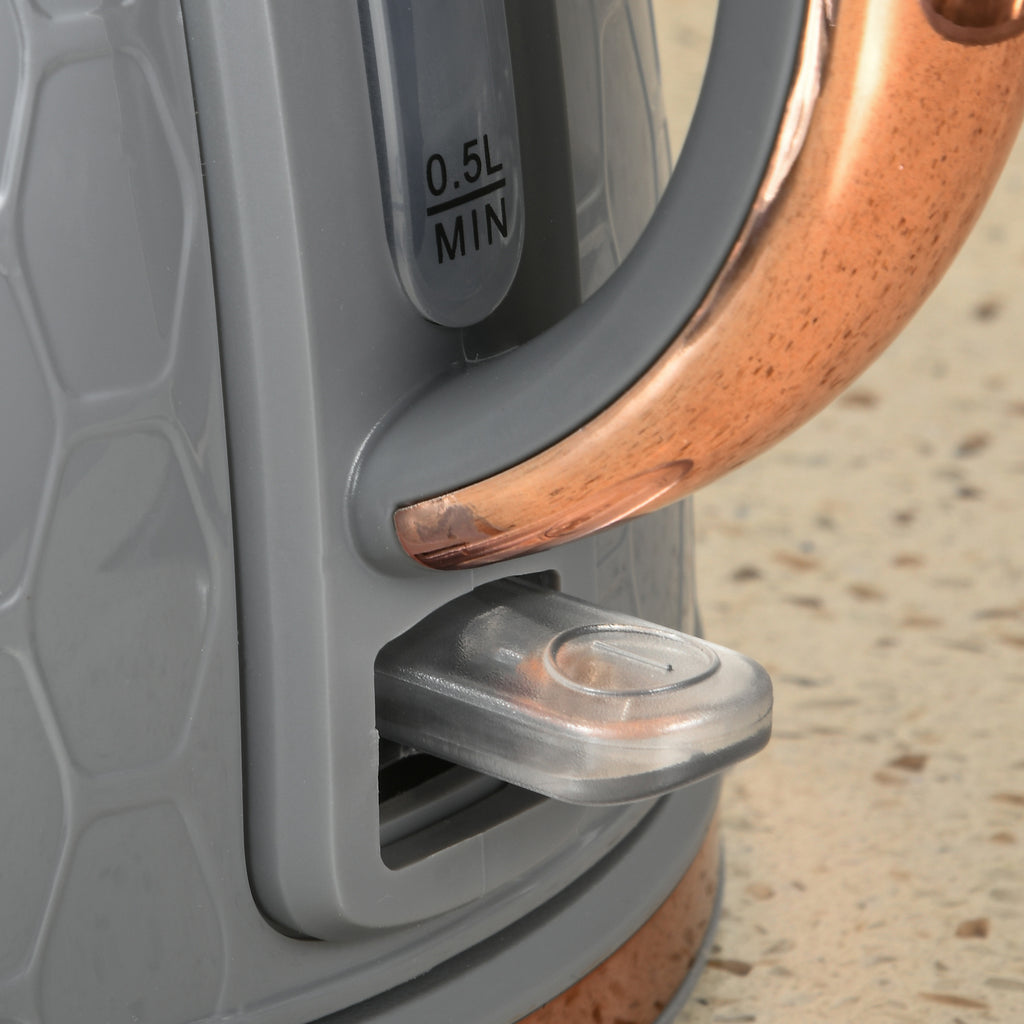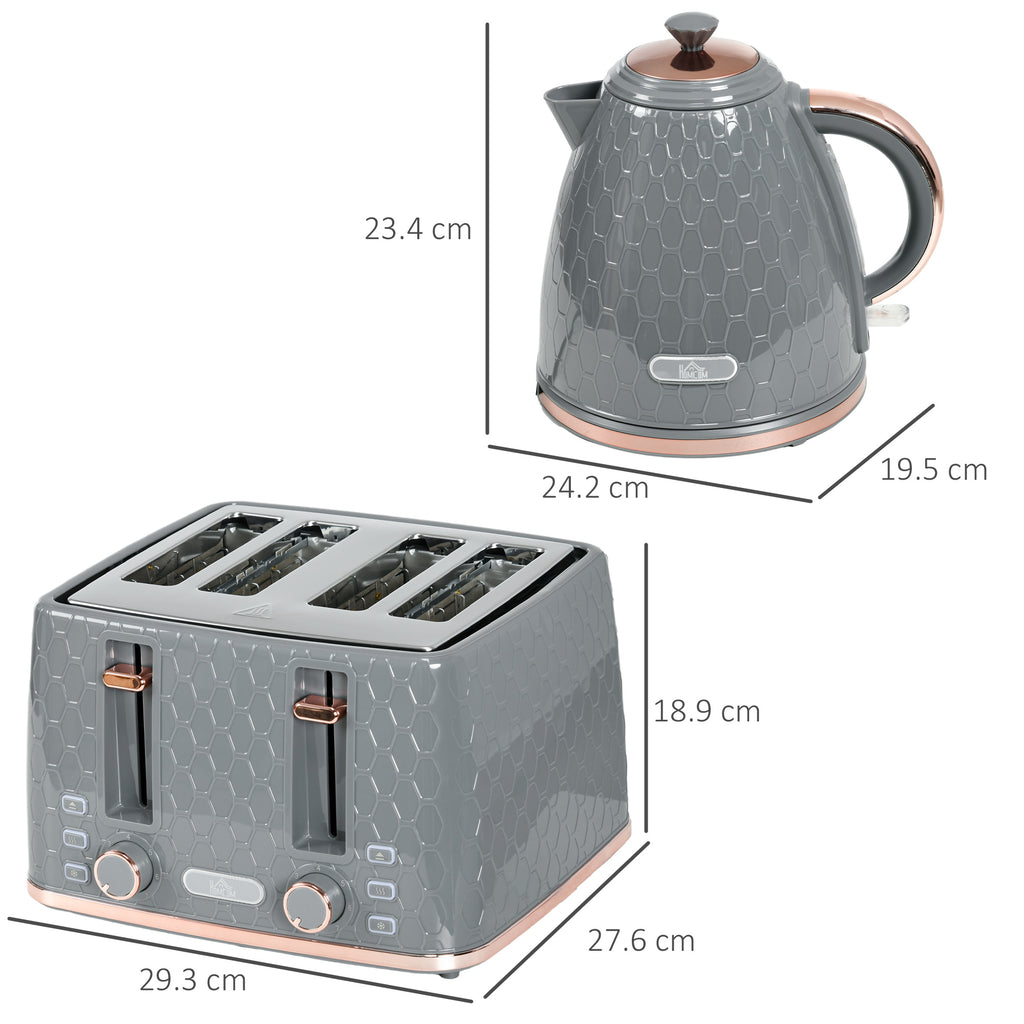 • 1.7L fast boil kettle and matching four-slice toaster. Stylish honeycomb design