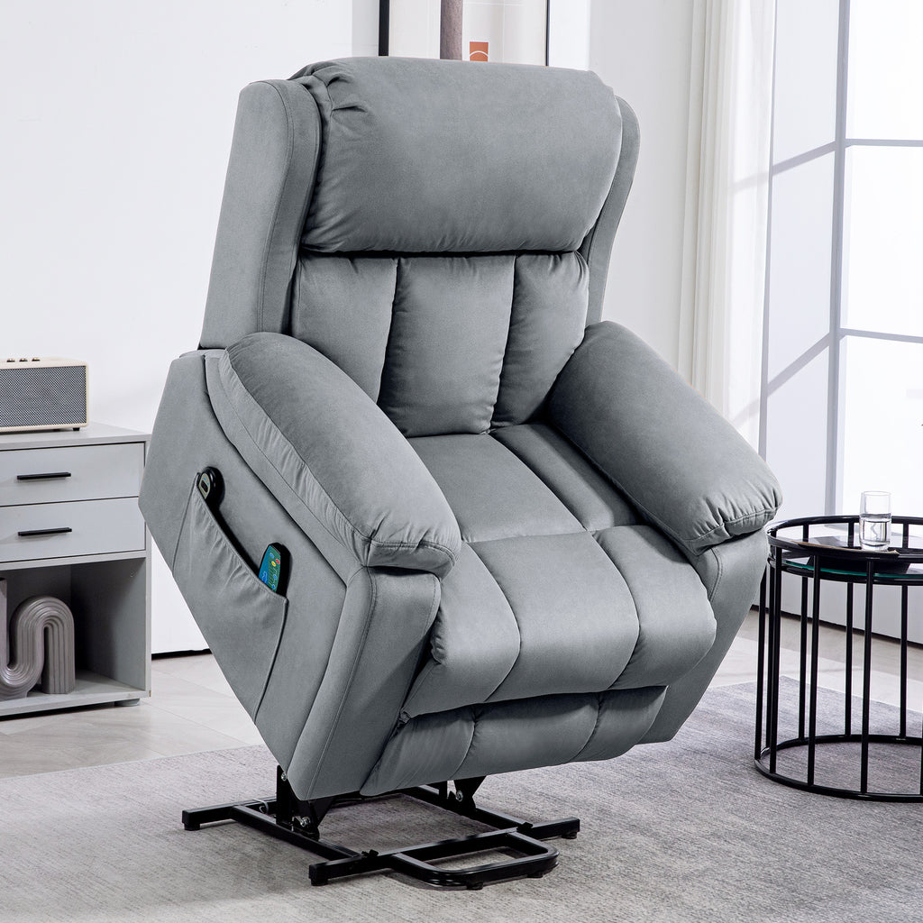 Relaxation and comfort comes super deluxe with this HOMCOM electric lift chair. Plus, it has a reclining back, a footrest and multiple massage modes with heat - is there anything this piece can't do? The eight massage modes are spread between the back, lumbar, thighs and legs, with the lumbar heating for added comfort and impact. This power lifting chair is complete a side pocket to hold remote.