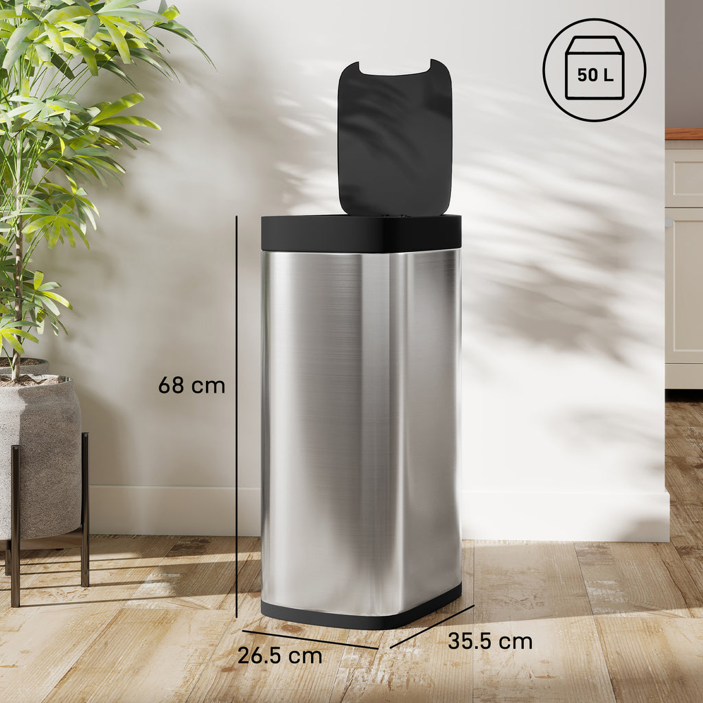Messy hands need not be a nuisance in the kitchen, with this HOMCOM sensor bin. This 50L piece is a spacious and easy-use design making it great for all family homes. Simply wave within 15 cm and the lid will open automatically - excellent for when your hands are full or dirty. This rubbish bin is made from powder coated metal for a strong shell