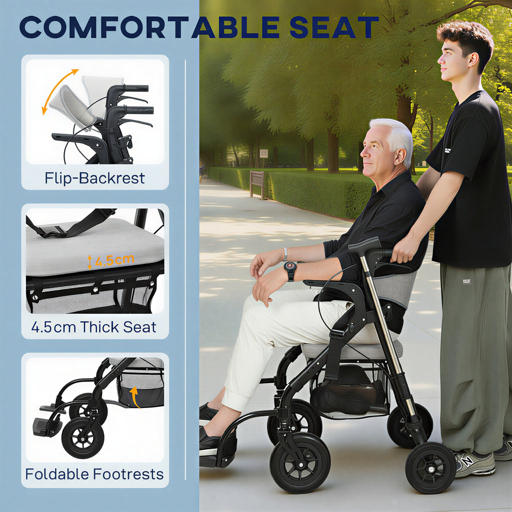 HOMCOM 2-in-1 Mobility Walker With Seat, Foldable Rollator With Footrests