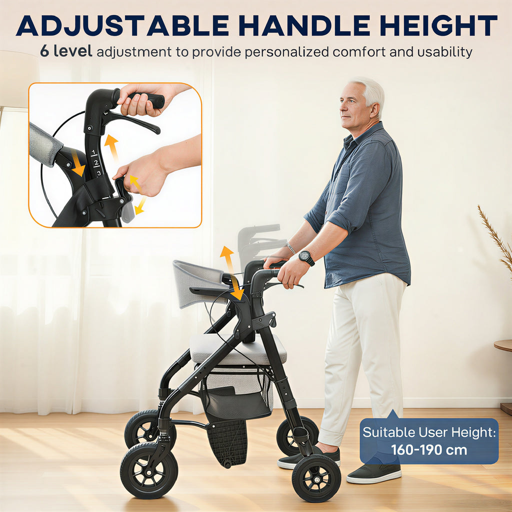 • Adjustable rollator handle suits users from 160-190cm in height