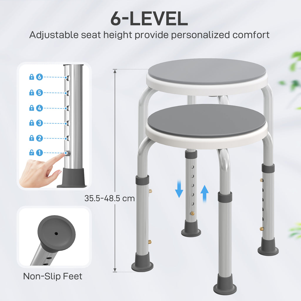 Made for assistance in the shower or bath, this bath stool from HOMCOM is suitable for the elderly or those who need extra help daily. Made from aluminium, the four legs are resilient to water damage, keeping the chair stable, balanced and able to withstand up to 135kg in weight. Adjustable to six different levels so you can set it at the most comfortable level for you, it is fitted with a full rotating seat so you can move from side-to-side easily. It's finished with non-slip feet for safety.