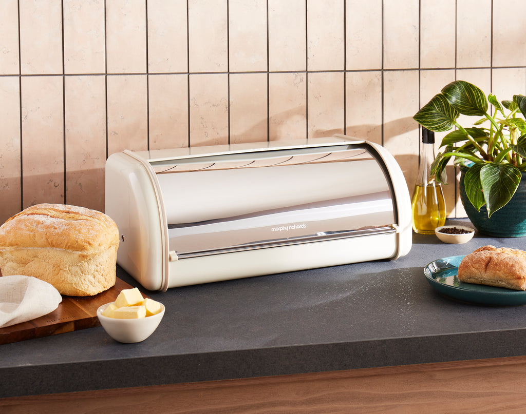 Introducing our Large Roll Front Bread Bin, designed for the ultimate convenience. Made from food safe steel and designed with a front roll up lid with a magnetic seal, perfect for keeping your baked goods fresh for a long period of time. With a generous capacity of 2.3 litres, it easily fits loafs, bread rolls, and crumpets all at the same time! The stylish finish adds a touch of elegance but also durability as it is designed from carbon steel and stainless steel for longer lasting use. Plus, simply wipe the cream bread bin with warm and soapy water and dry thoroughly before use to maintain its quality finish.