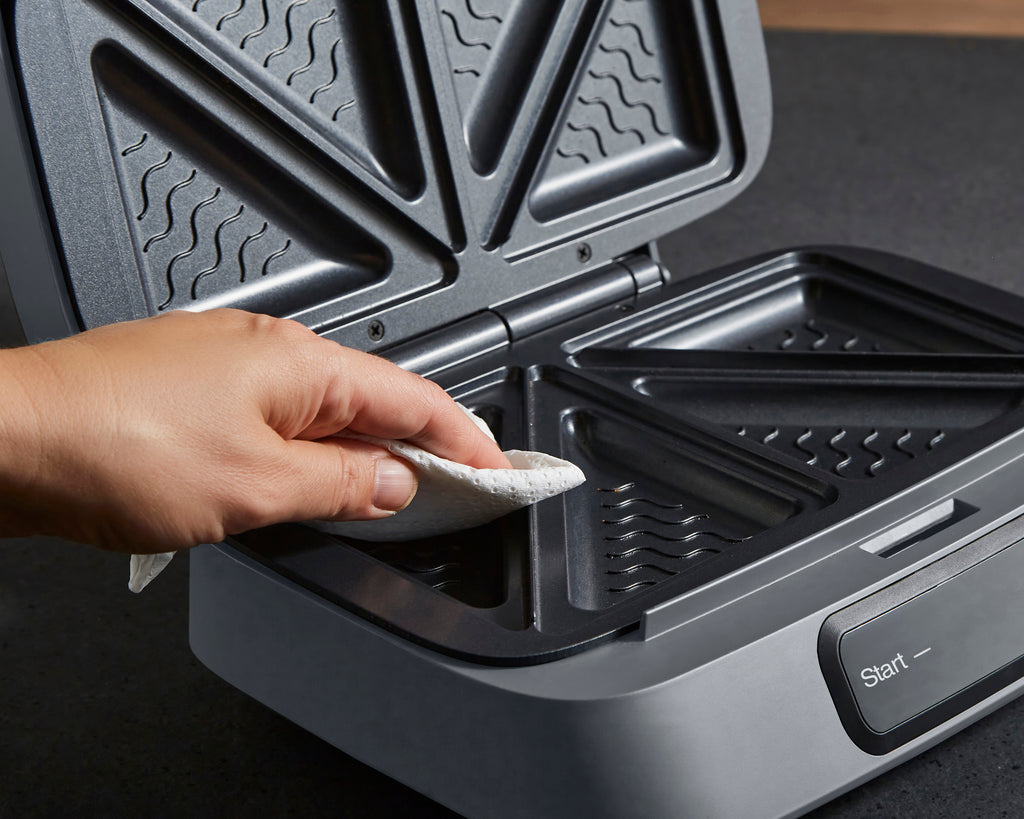 Make crispy, delicious toasties with our GrillX Toasted Sandwich Maker, delivering the answer to convenient lunches and quick savoury snacks! Made with non-stick toastie plates and an innovative steam wall, this toastie machine promises premium cooking performance for the perfect toasties. Plus, the built-in timer and LED indicator light let you know when your toastie is finished cooking and ready to eat.