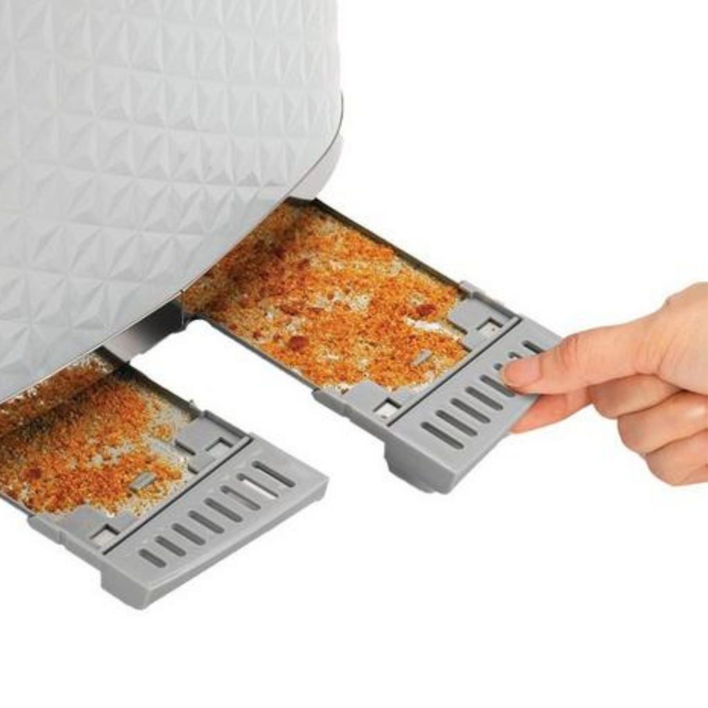 Introduce your kitchen to the ultra-stylish Vector Pyramid style kettle. With its 3D patterned finish and sleek design, this modern appliance is a great addition to any countertop. Perfect for larger households, this 1.5L kettle can quickly boil up to 6 cups of water at once with its 3kW rapid boil element. It also features an easy-view water window so you can easily see how much you need without wasting energy or time guessing the amount! The removable limescale filter ensures you get a quality drink every time, and the 360° base makes docking and storage a breeze no matter which direction you place it in. You wonâ??t want to miss out on adding a pop of style into your home with the Vector Pyramid Kettle. Ideal for busy households, the Vector 4-Slice Toaster brings practicality and style to your breakfast routine. Easy to operate and beautiful to look at with its stainless steel trims, itâ??ll be the focal point of your kitchen. Youâ??ll love how easy it is to operate with its intuitive controls, including auto pop-up and variable browning control, ensuring you can enjoy the perfect toast every time. With a removable crumb tray for easy cleaning, and frozen, cancel and re-heat settings for added convenience, say goodbye to soggy toast in the morning and enjoy the perfect breakfast made simple by the Vector 4-slice Toaster.