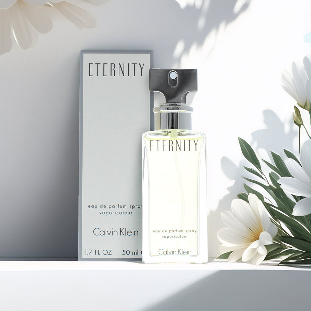 Calvin Klein launched Eternity by Calvin Klein in 1988 as a floral fragrance for women. Eternity, inspired by the ideal of lasting love and intimacy, is a romantic floral fragrance. This harmonious blend of both classic and contemporary scents is a perfect combination, created to reflect timeless quality and modern style.