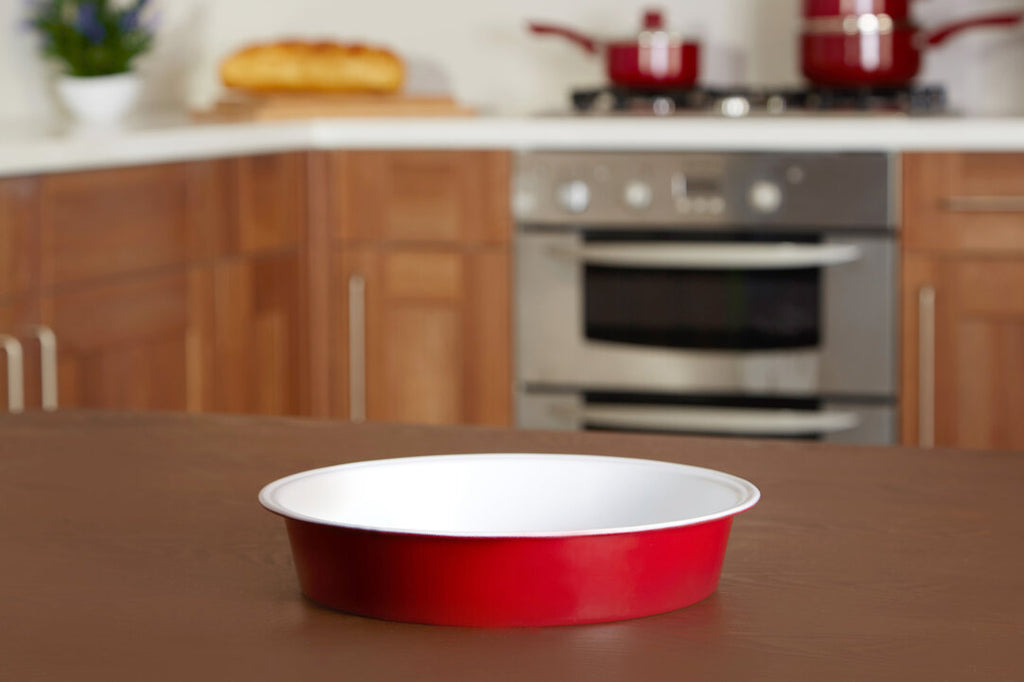 This round cake tin features a striking two-tone design, boasting a clean white interior and a bold red exterior. Crafted from carbon steel with a ceramic coating, it benefits from the advantages of this finish. The ceramic coating ensures non-stick properties, making it easy to clean. Additionally, it promotes even heat distribution for consistent baking results and offers high heat resistance.