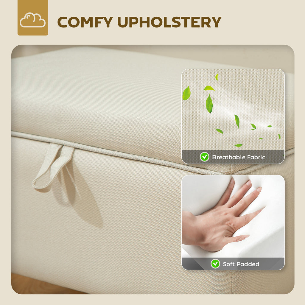 â? Lid top is padded so you can sit on it comfortably. Linen-look upholstery is smooth