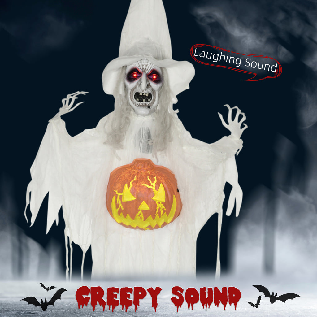 The scary outdoor Halloween decor would like to have some fun. When trick-or-treaters approach, she will sense them and the fun starts! Her eyes will blink a wicked red light and make creepy sounds. Desperate for entertainment, she turns her head and waves her arms to terrify them. If you get our HOMCOM Halloween witch decoration, trick-or-treaters will think twice about taking too many candies from your candy bowl.