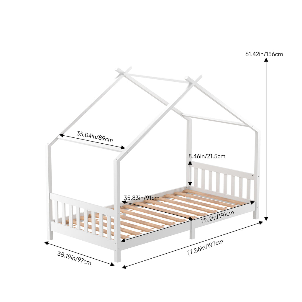 The Pine Wood House Bed Frame creates a magical and cosy space for childrenâ??s bedrooms. Its charming house-shaped design inspires imagination while providing a sense of security. Made from sturdy pine wood with a slatted base, it ensures durability and mattress stability. The low height makes it easy for children to climb in and out safely, while assembly is quick and tool-free. Finished in a blend of white and natural wood tones, it adds a playful yet stylish touch to any room.