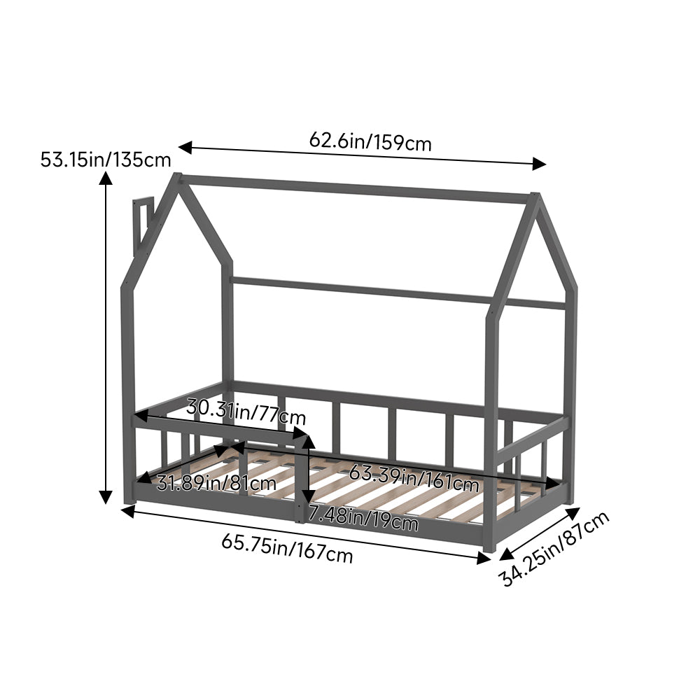 The Grey Wooden House Bed Frame creates a fun and safe sleeping space for children. Its house-shaped design with a playful chimney inspires imagination and makes bedtime enjoyable. Built from durable pine wood, it provides long-lasting stability and strength. Low height ensures easy access for younger children, while surrounding guardrails enhance safety during sleep and play. Perfect for bedrooms, it combines style, functionality, and child-friendly design.
