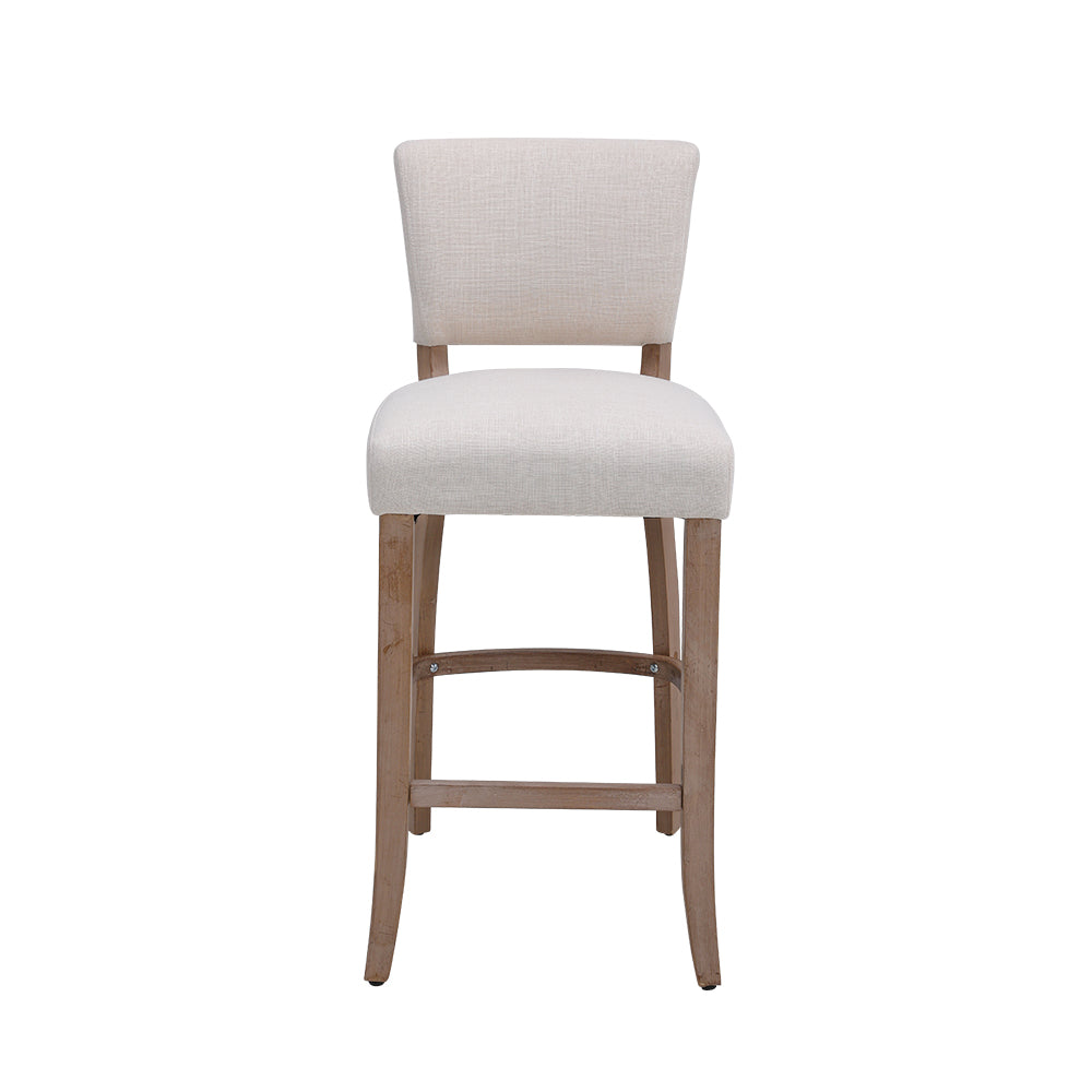 Enhance your bar or kitchen with these stylish bar stools. With an armless design and thoughtfully positioned footrest, they provide immediate comfort. Upholstered in durable, wear-resistant linen and supported by solid hardwood legs, they are built to last. Their contemporary style makes them a timeless addition, elevating any setting or occasion.