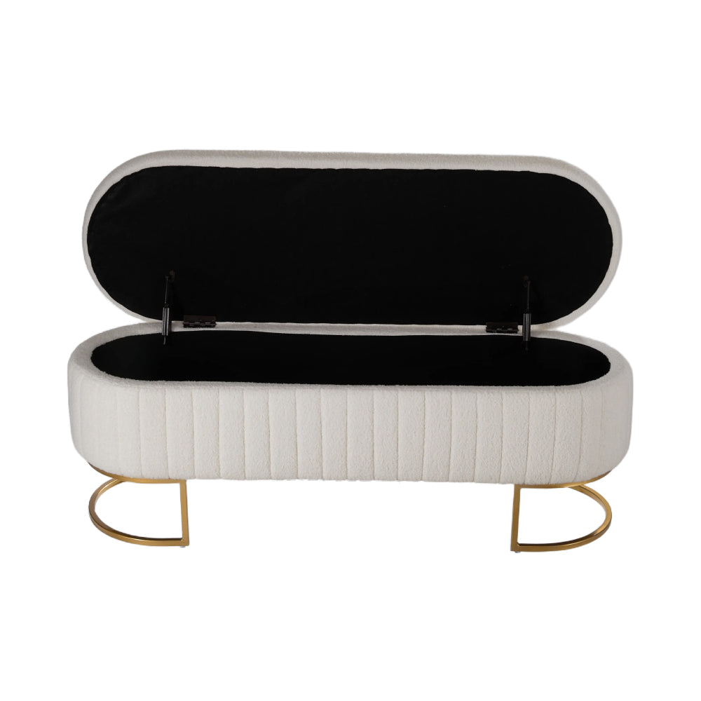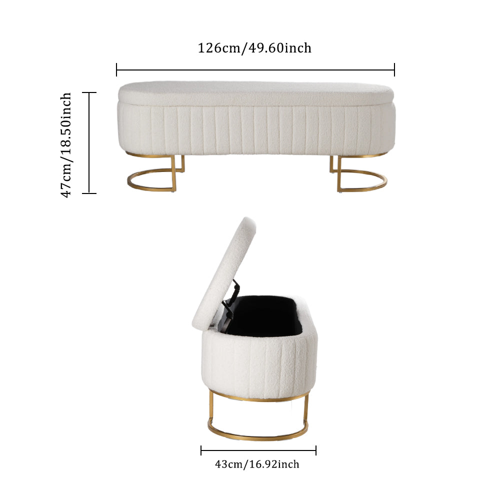 Enhance your living space with this versatile white upholstered storage bench. The soft sponge interior provides exceptional comfort for sitting or resting your feet. Flip-top design offers convenient hidden storage for books, toys, or accessories. Its sturdy frame ensures durability and long-lasting support. Perfect for living rooms, bedrooms, or entryways, combining function with modern elegance.