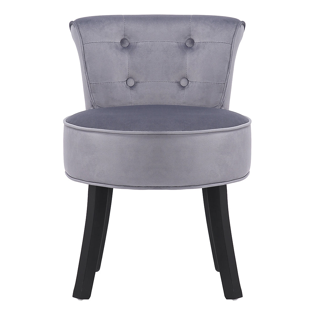 Whether youâ??re preparing for the day ahead or winding down in the evening, this stool delivers both comfort and ease. Upholstered in soft velvet and supported by angled black rubberwood legs, it presents a sleek, contemporary style that enhances any interior. Designed with a generously padded round seat and a tufted high backrest, it keeps you comfortable for longer periods, making it the perfect choice for finishing your make-up or simply taking time to relax.