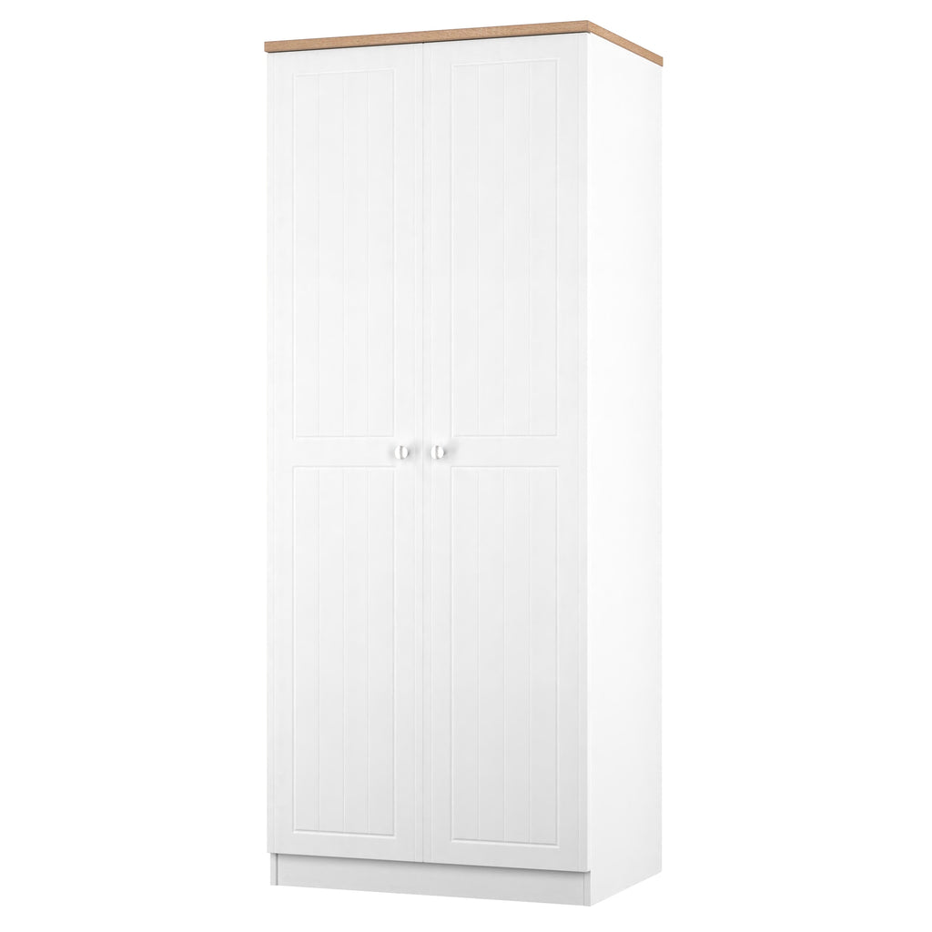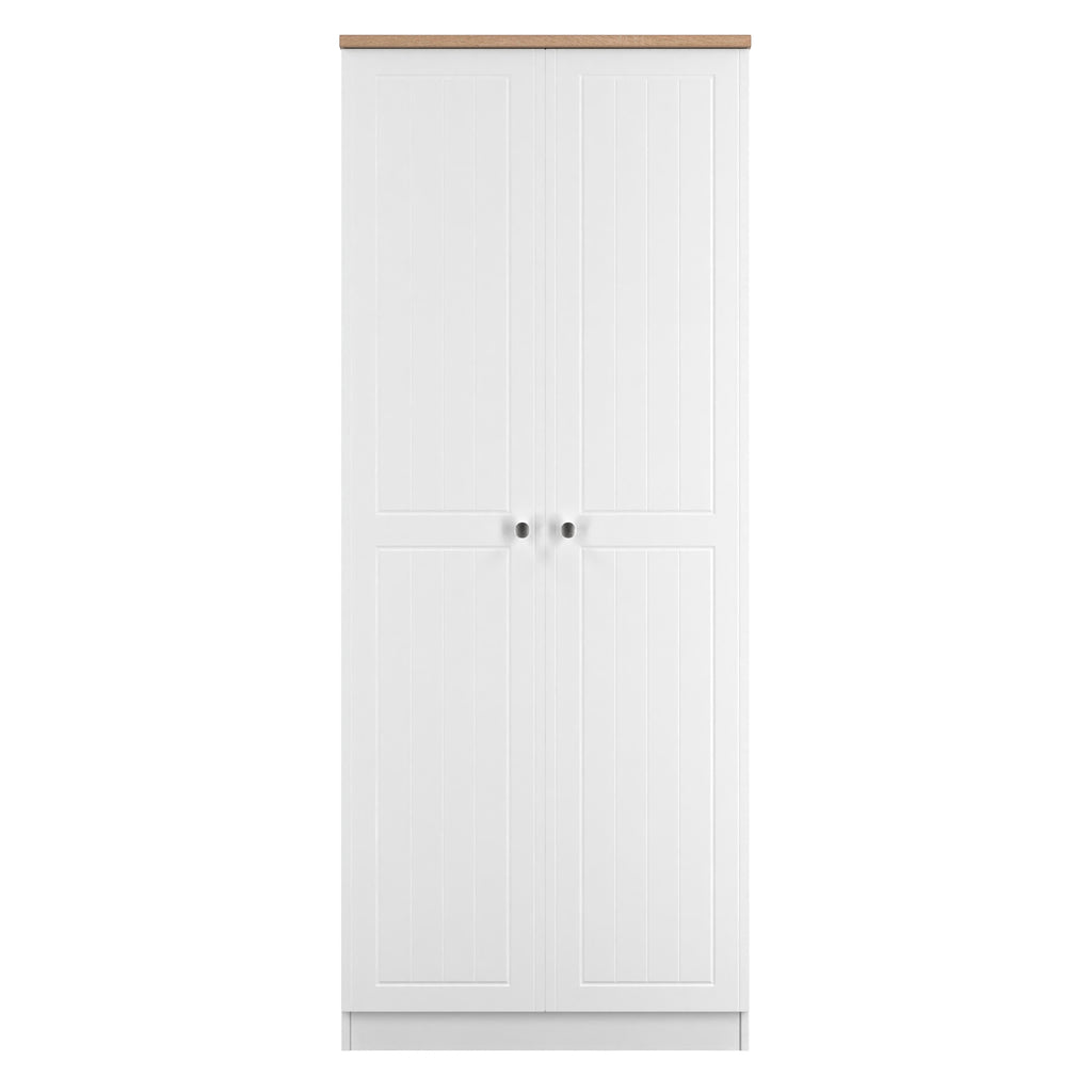 (Dimensions: H182 x W74 x D53cm) This full height double door wardrobe is perfect for any bedroom. . The classic, elegant Vienna range is available in a variety of painted wood finishes with natural wood effect tops and stylish chrome handles on all doors and drawers. This range boasts a classic and traditional design which will compliment a variety of traditional home decors.