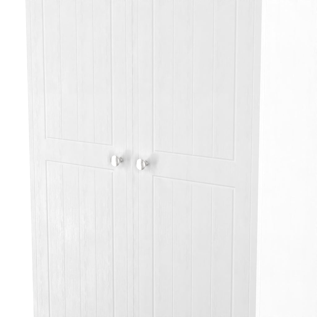 Made in the UK; Scratch Resistant Finish; Ready Assembled; Classic Design; Metal Knob Handles; Does not have legs; Double Doors; Sturdy Hanging Rail; Fixed Internal Shelf