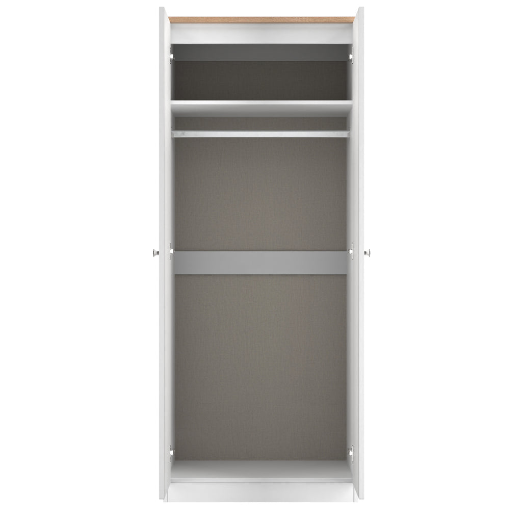 Lynton Ready Assembled 2 Door Wardrobe In Porcelain Ash & Bardolino Oak