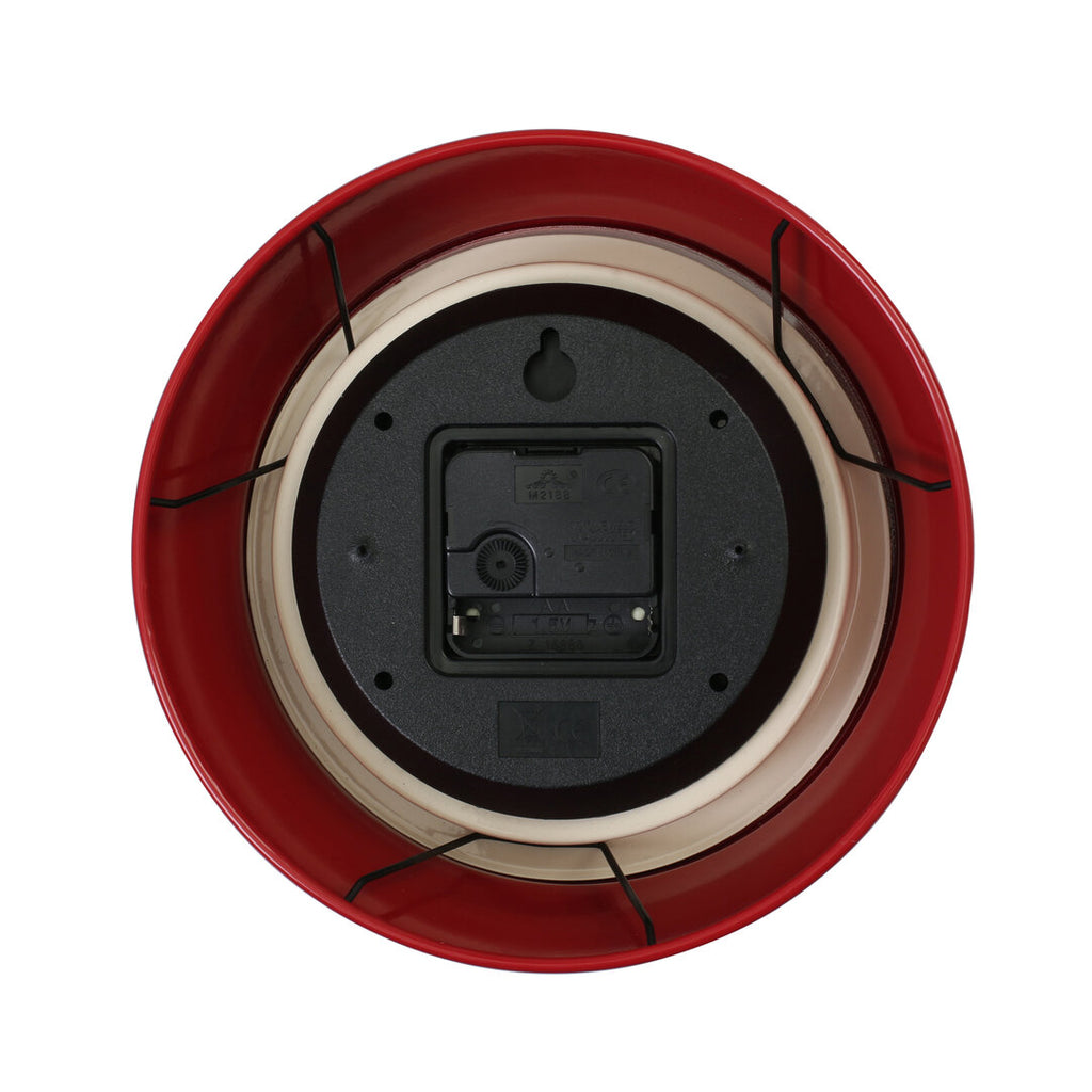 From the vintage numbering on its dial to its chunky case, this wall clock exudes 1950s retro charm. The case is made from strong metal, its red finish coordinating with the bold black numbering.
