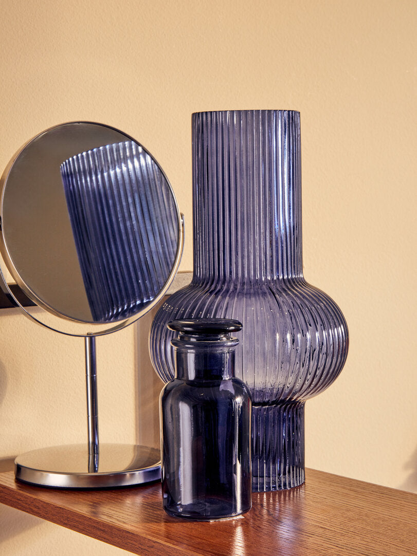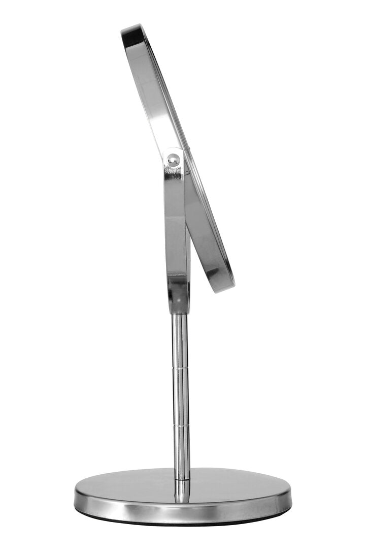 One side of the round mirror has a double magnifying surface, helping the user to achieve greater accuracy when shaving or applying makeup. Its thick round stand has a foam covering on its base to protect surfaces from being scratched by the metal.