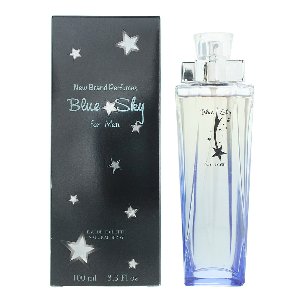 New Brand Blue Sky For Men Eau de Toilette by New Brand is an Amber Woody fragrance for men. This fragrance is perfect for autumn and winter and ideal for both day and evening wear. It offers a bold and sophisticated blend of fresh aromatic notes, delicate florals, and warm woody-gourmand undertones, creating a captivating and masculine scent.