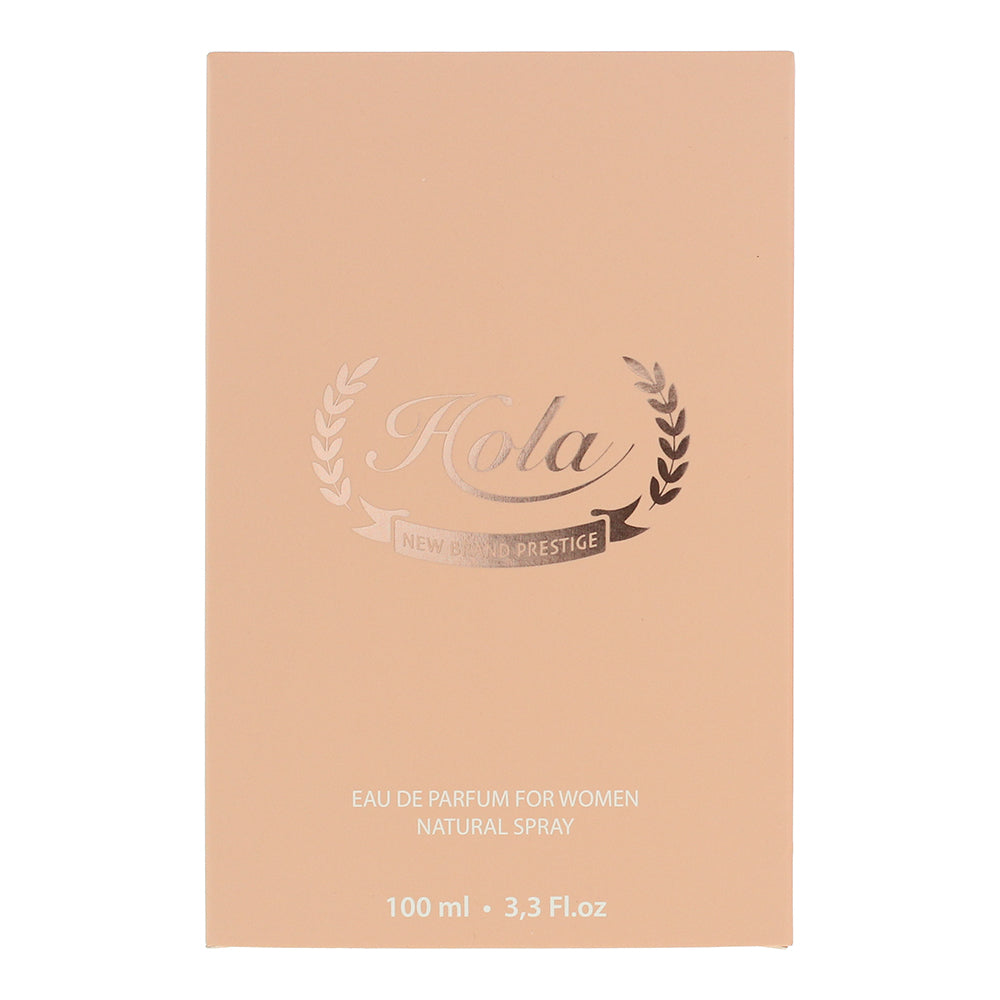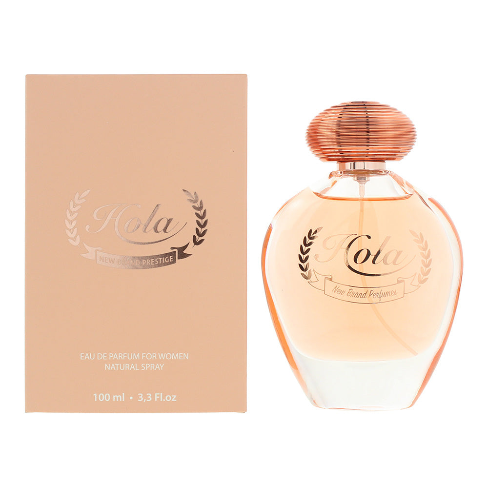 New Brand Prestige Hola Eau de Parfum by New Brand is an Amber Vanilla fragrance for women. Launched in 2019, this fragrance is perfect for autumn and winter and ideal for both day and evening wear. It offers a warm and inviting blend of spicy citrus, soft florals, and comforting vanilla-amber undertones, creating a luxurious and captivating scent.