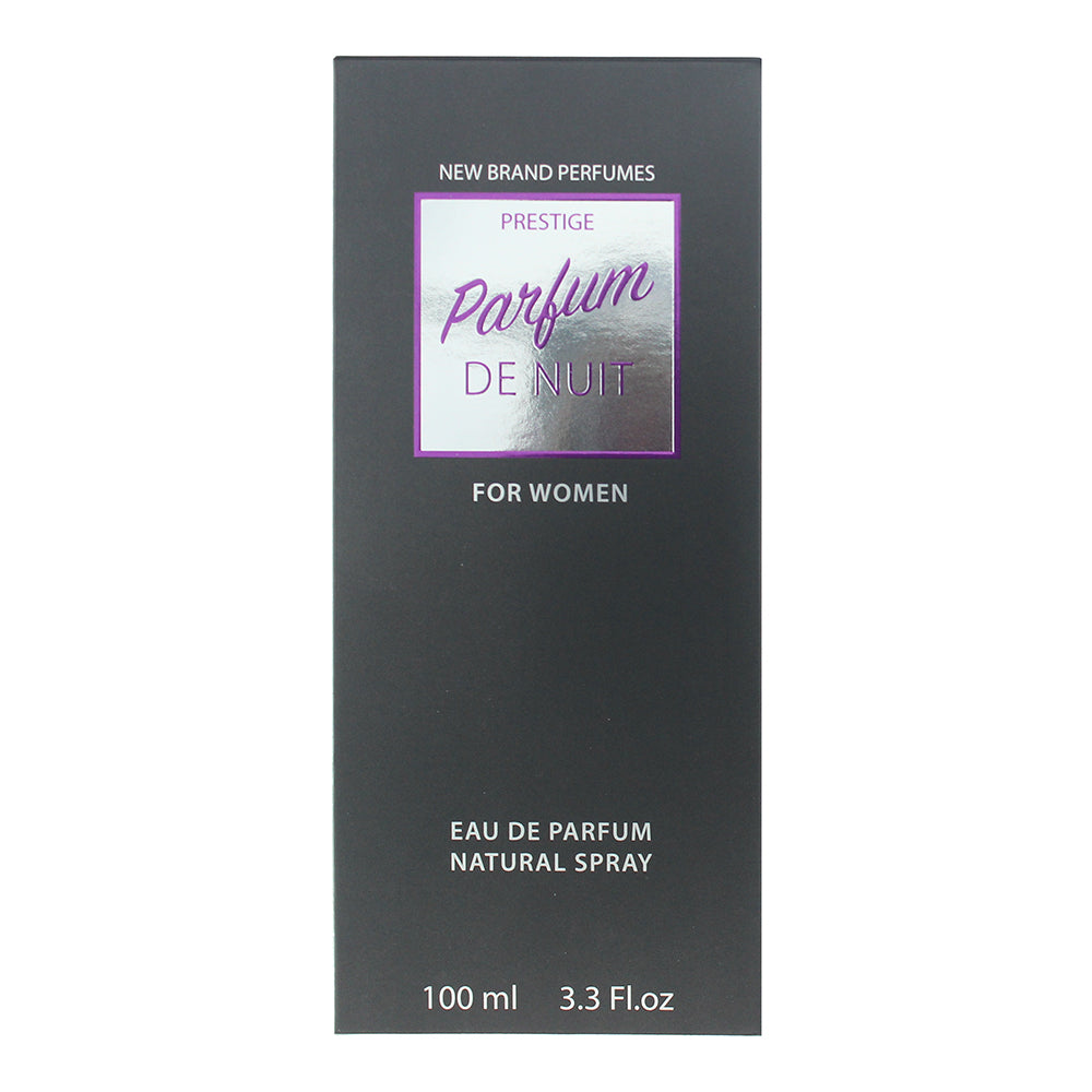 Ideal for those who appreciate fruity, floral, and musky fragrances, New Brand Prestige Parfum De Nuit For Women Eau de Parfum is a confident and feminine scent that exudes elegance and sophistication, housed in a sleek bottle that reflects its refined and timeless character.