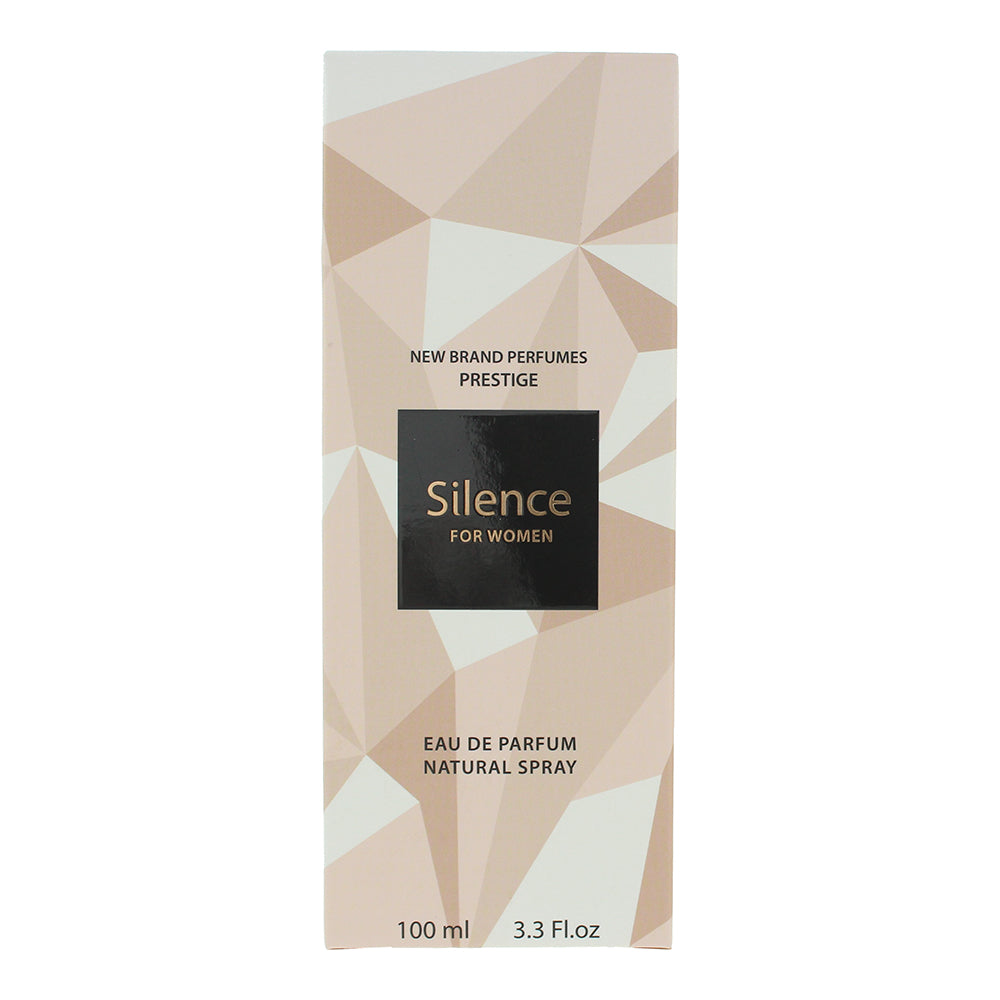 New Brand Prestige Silence For Women Eau de Parfum by New Brand is a Woody Floral Musk fragrance for women. This fragrance is perfect for autumn and winter and ideal for both day and evening wear. It offers a refined and sensual blend of juicy fruits, delicate florals, and warm gourmand-musky undertones, creating a sophisticated and captivating scent.