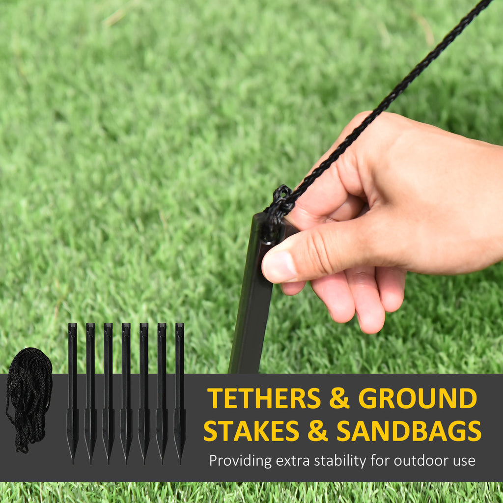 - Includes seven stakes and three tethers to keep it securely anchored outdoors;