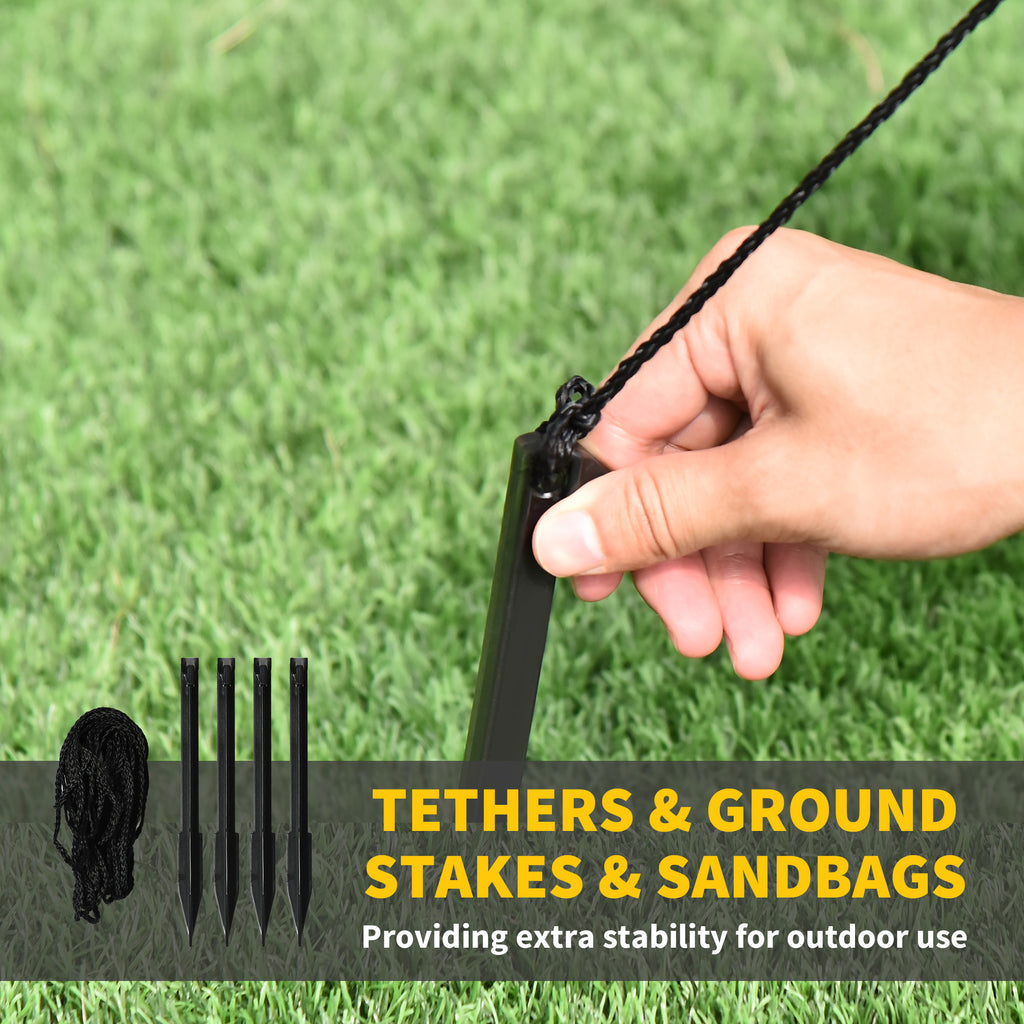 - Includes four stakes, two tethers and a sandbag to keep it securely anchored outdoors;