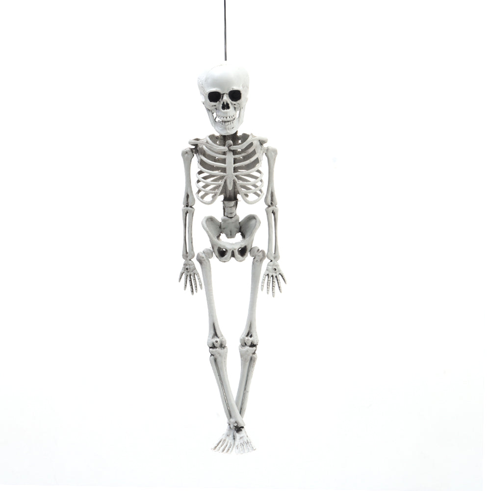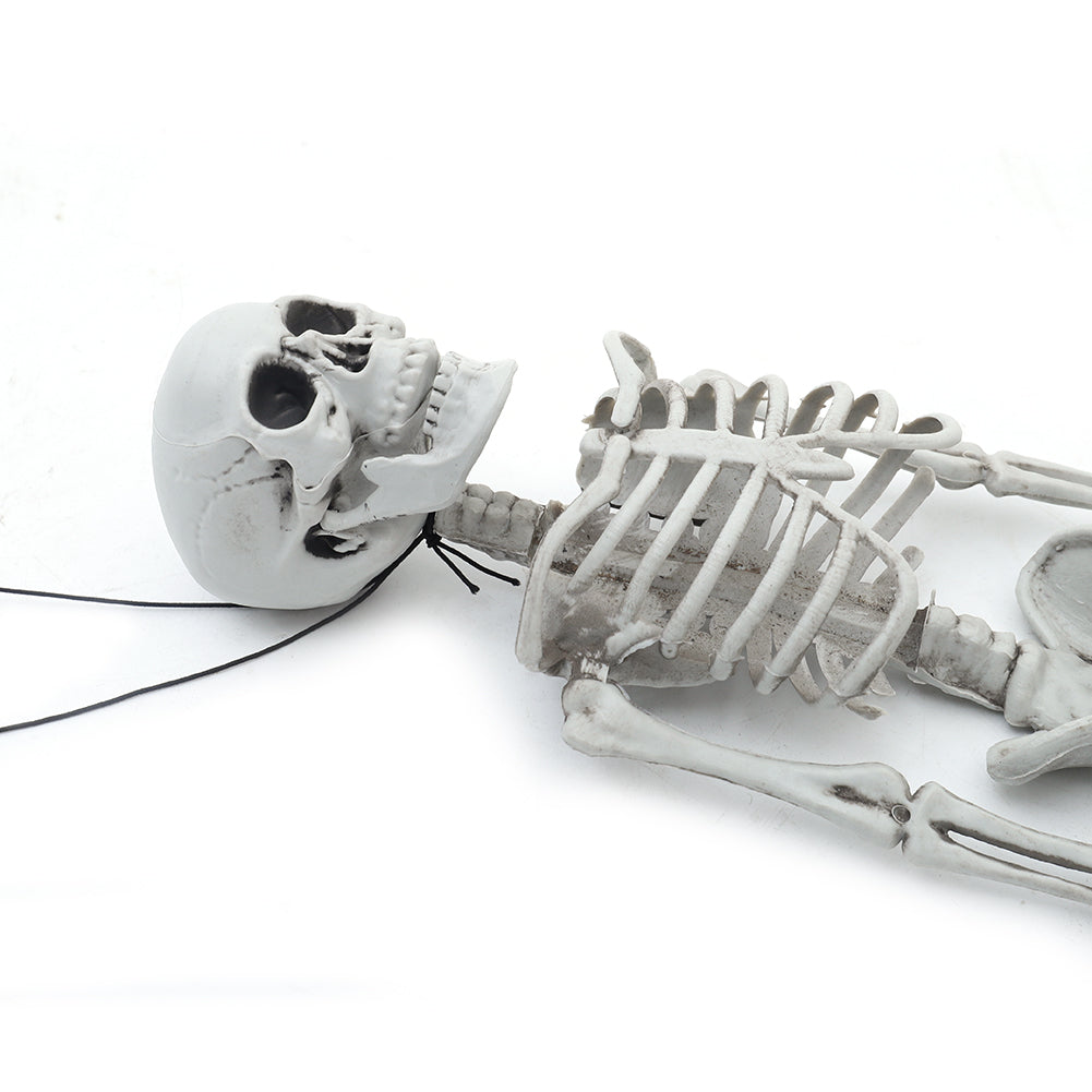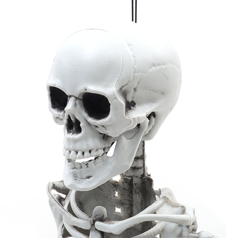 Add a spooky touch to your Halloween with this lifelike skeleton prop. Featuring posable limbs and a fearsome appearance, itâ??s perfect for creating a chilling atmosphere. Hang it in closets, behind curtains, or other hidden spots to startle anyone who passes by. Made to last, this skeleton will be a standout feature in your Halloween decor for years.