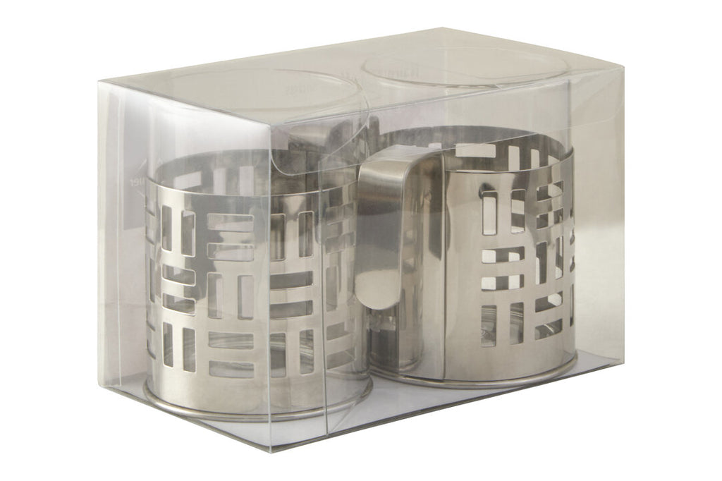 Serve flavoursome coffee using the set of 2 Nairobi coffee mugs that will give them something else to talk about. The tankard is made from stainless steel and given a chrome finish, with a heat resistant glass insert for an elegant look. The right angled handle provides a comfortable grip while the double line design adds to its overall style. Each cup has a capacity of 150ml and after use, you can remove the heat resistant glass making it easy to wash.
