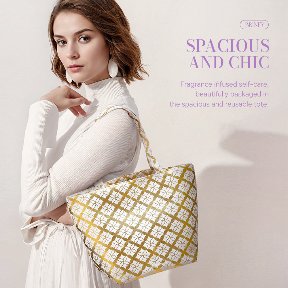 Enjoy a luxurious spa experience with this elegant bath gift set. Each product is made with nourishing ingredients that cleanse and moisturise your skin while filling your bath with a delightful scent. Perfect for daily use, it leaves you feeling refreshed and relaxed. Presented in a stylish, reusable tote bag, this set is ideal for treating yourself or as a thoughtful gift for someone special.