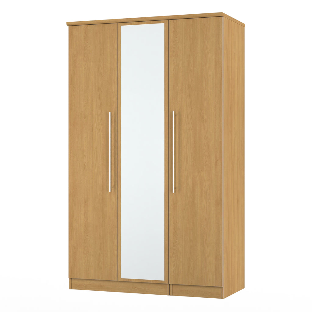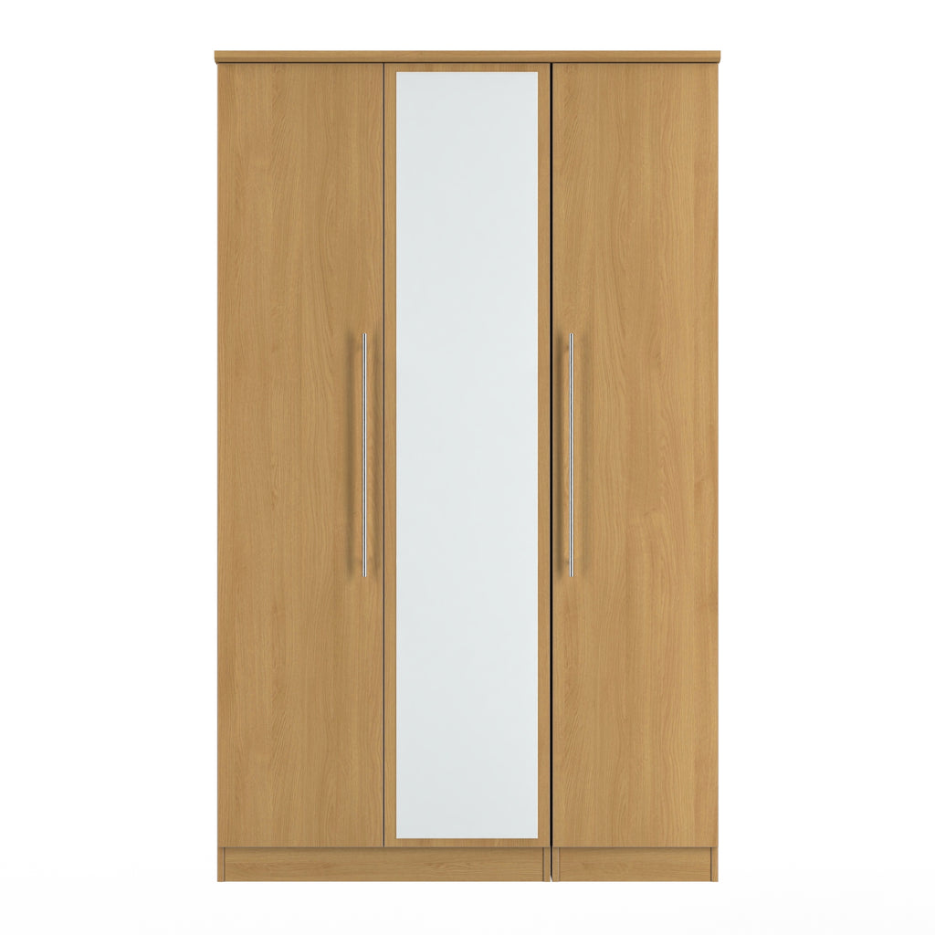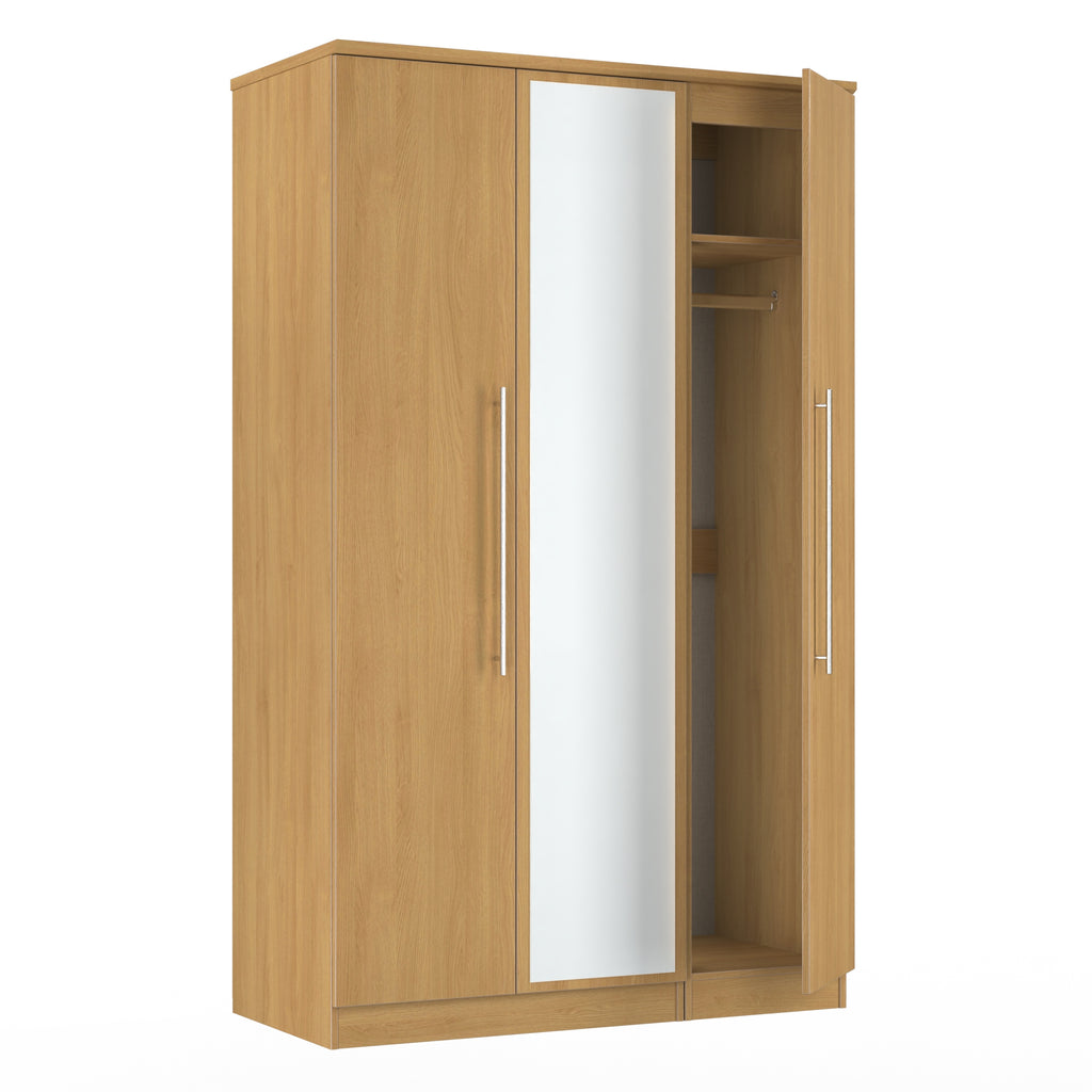 Made in the UK; Scratch Resistant Finish; Ready Assembled; Traditional Design; Metal T-Bar Handles; Does not have legs; Triple Doors; Strudy Hanging Rail; Fixed Internal Shelf; Full Length Mirror