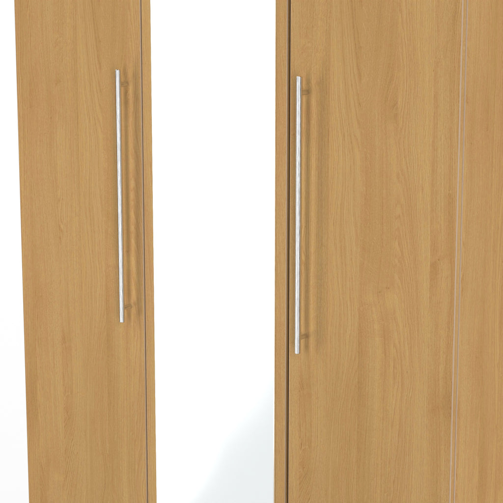 (Dimensions: H182 x W111 x D53cm) This full height triple 3 door wardrobe is perfect for any bedroom when a normal wardrobe is just not large enough. Also features a full height single mirrored door. The elegant, stylish Sherwood range is available in a range of durable scratch resistant natural wood or matt finishes. With metal T-Bar handles on all doors and drawers. All drawers come with long lasting metal drawer runners and a linen effect interior. All our furniture is made in the United Kingdom, to the highest quality. It is delivered direct to your location of choice by one of our two man delivery teams, and comes fully assembled (although legs may be removed to prevent damage in transit).
