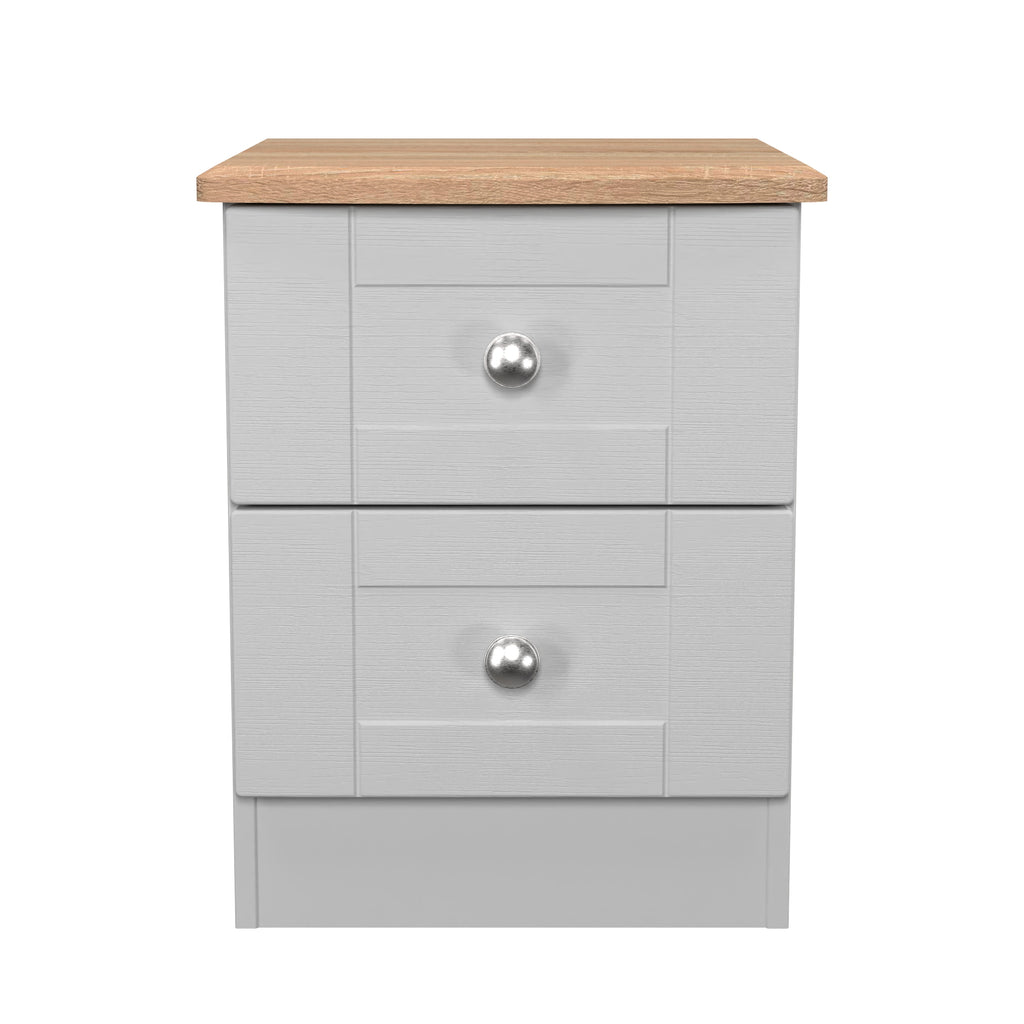 (Dimensions: H51 x W40 x D40cm) This 2 drawer bedside cabinet is practical and stylish. Perfect for any bedside or as a free standing storage unit. Wood grain effect, panelled design, recessed fronts, contrasting wood top and chrome handles, the Sussex Range is a beautifully elegant collection. With this range you have the freedom to choose from a wide range of furniture configurations, allowing you to create the perfect combination to optimise your storage space. All our furniture is made in the United Kingdom, to the highest quality. It is delivered direct to your location of choice by one of our two man delivery teams, and comes fully assembled - Please Note that any handles or legs may be removed durning transit to avoid the risk of damage.