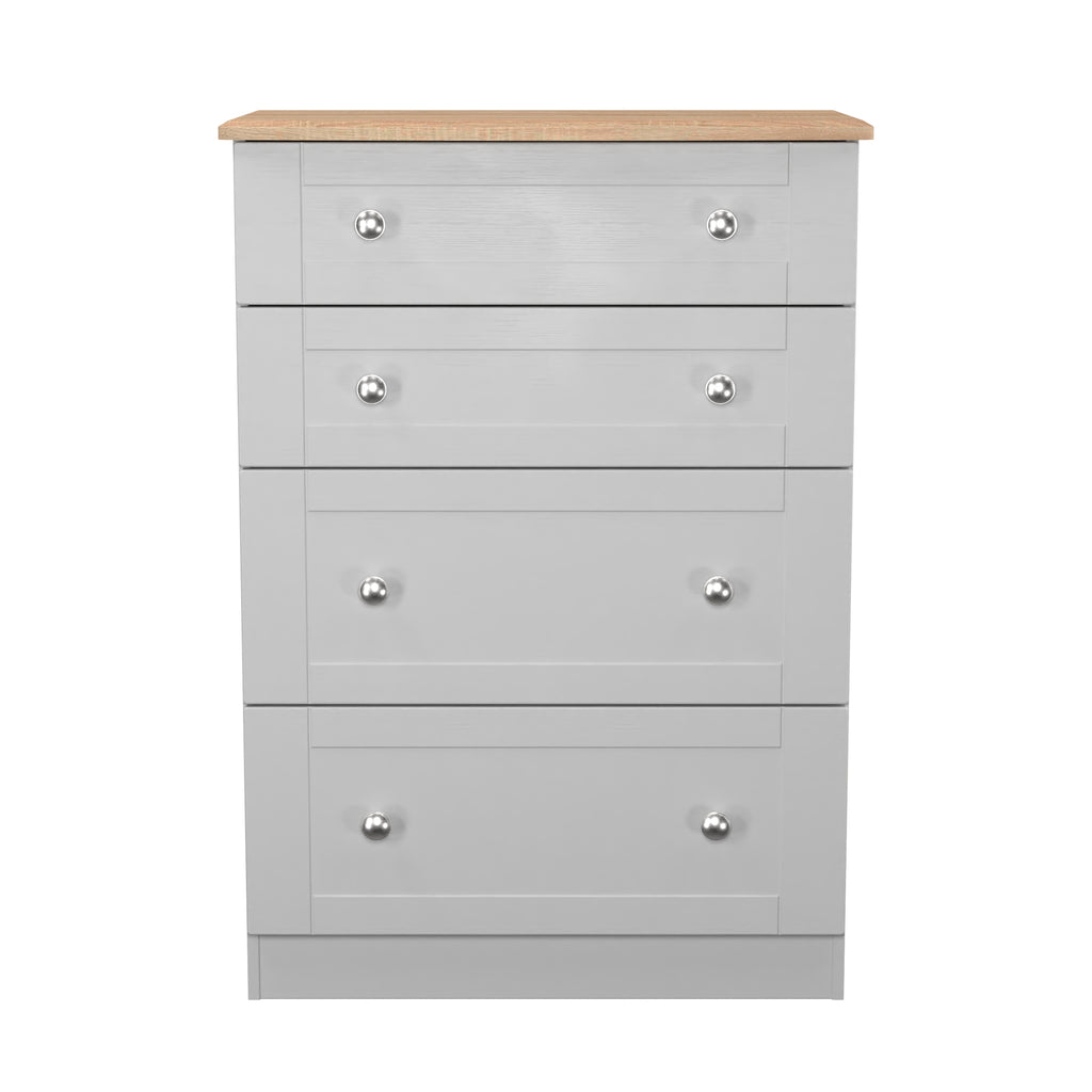 (Dimensions: H108 x W77 x D42cm) This deep 4 drawer chest of drawers is practical and stylish. Perfect for any home as a free standing storage unit. Wood grain effect, panelled design, recessed fronts, contrasting wood top and chrome handles, the Sussex Range is a beautifully elegant collection. With this range you have the freedom to choose from a wide range of furniture configurations, allowing you to create the perfect combination to optimise your storage space. All our furniture is made in the United Kingdom, to the highest quality. It is delivered direct to your location of choice by one of our two man delivery teams, and comes fully assembled - Please Note that any handles or legs may be removed durning transit to avoid the risk of damage.