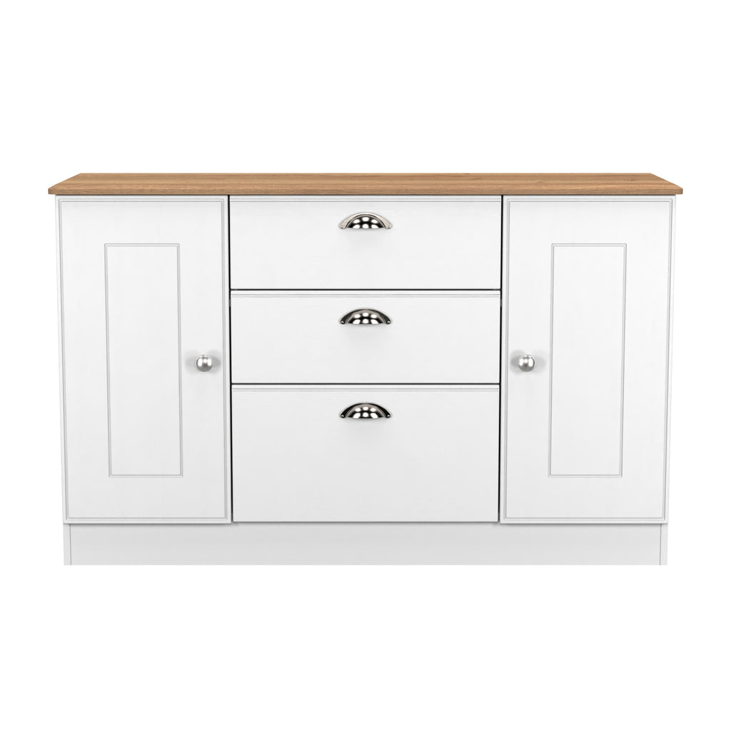 (Dimensions: H79 x W128 x D42cm) This wide storage unit has 2 storage cupboards and 3 central drawers making it perfect for any living room, dinning room or louge. Could also be used as a TV/Media stand or side board. It's easy to create a bedroom that showcases effortless chic, with this stylish range. The shaker-inspired design exudes understated luxury, each piece is finished in a number of colours with brushed steel handles and the option of a contrasting oak effect top. A well-thought-out mix of hanging and flat storage that's suitable for any room. All our furniture is made in the United Kingdom, to the highest quality. It is delivered direct to your location of choice by one of our two man delivery teams, and comes fully assembled (although legs may be removed to prevent damage in transit).