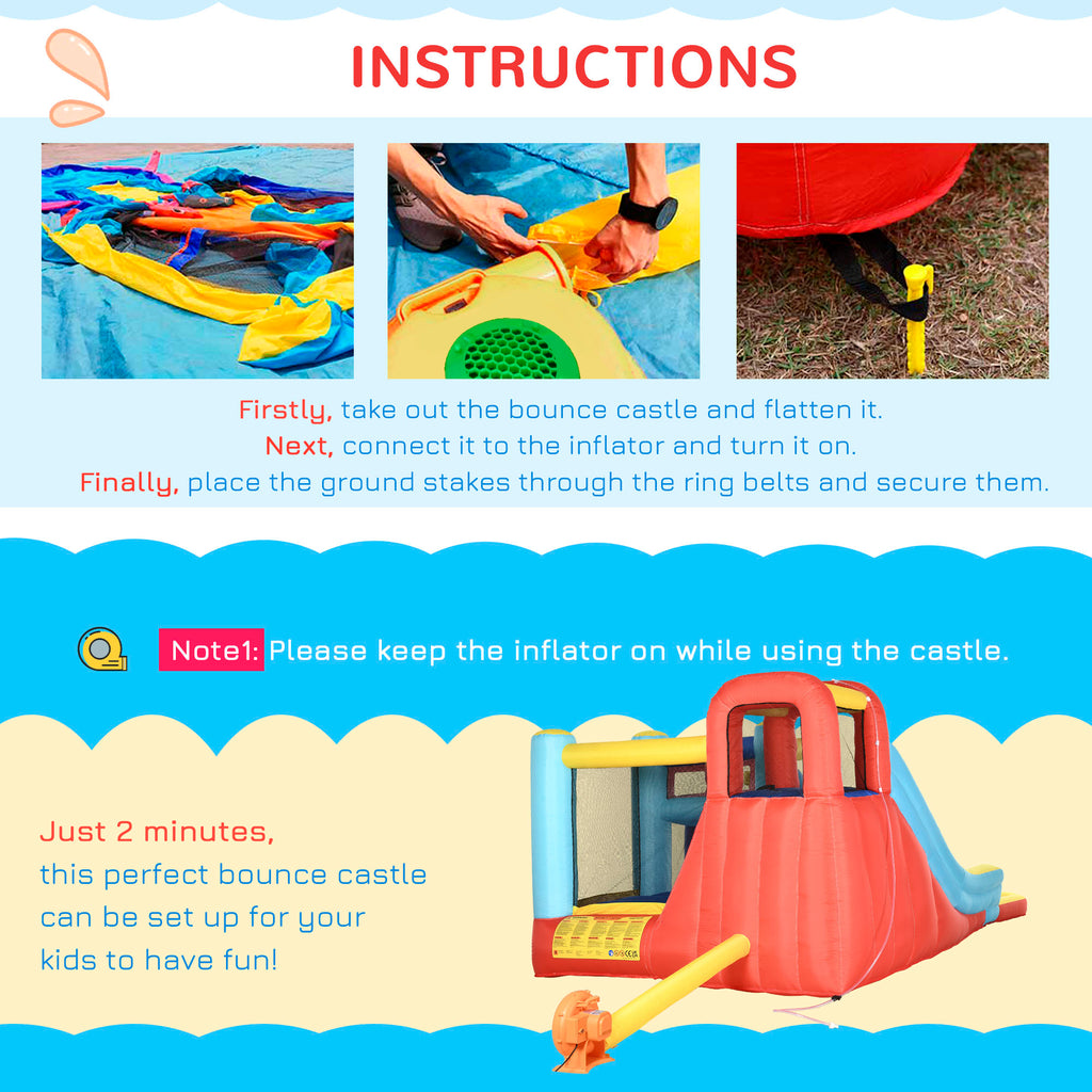 Outsunny 4 in 1 Kids Bouncy Castle W/ Slide Pool Trampoline Climbing Wall Blower
