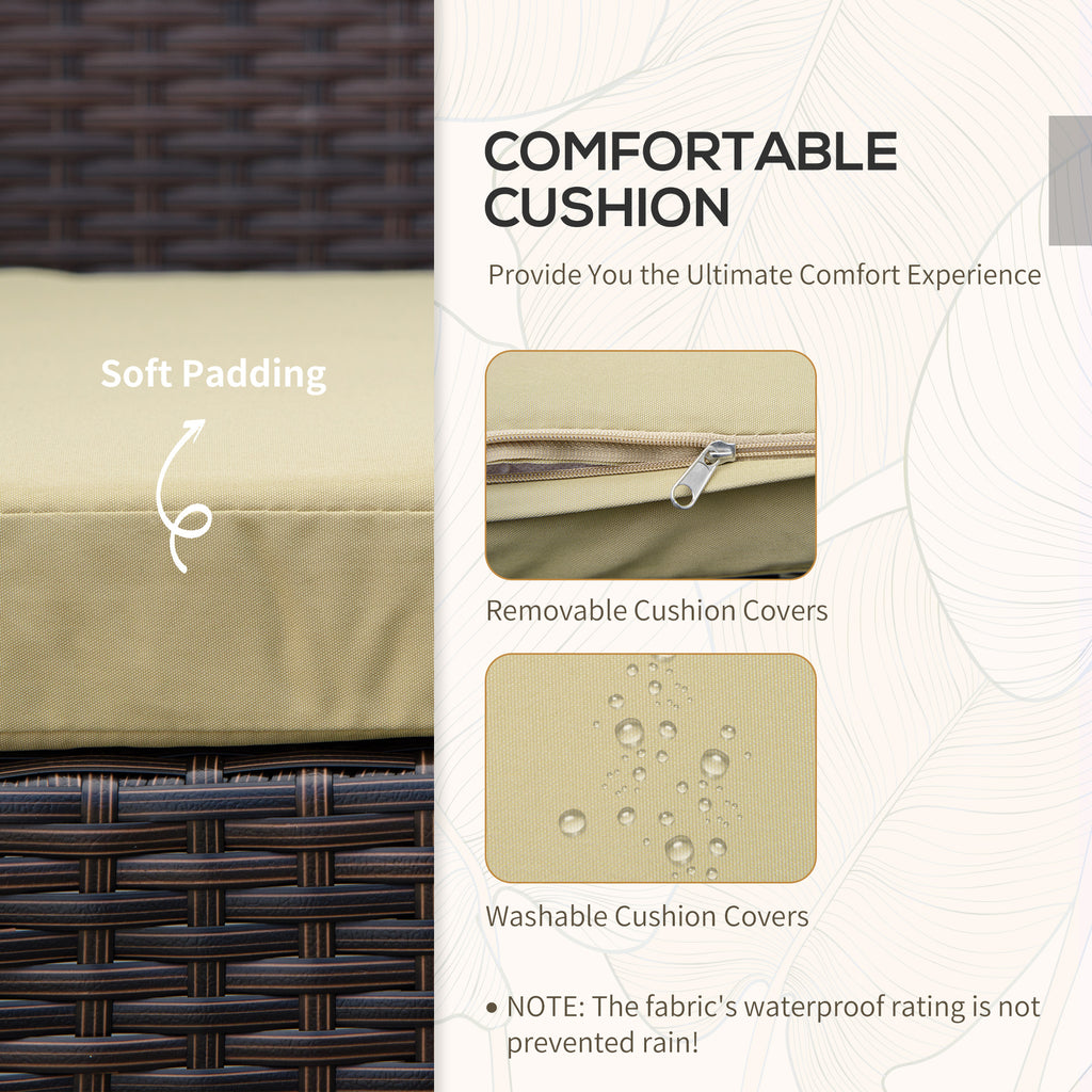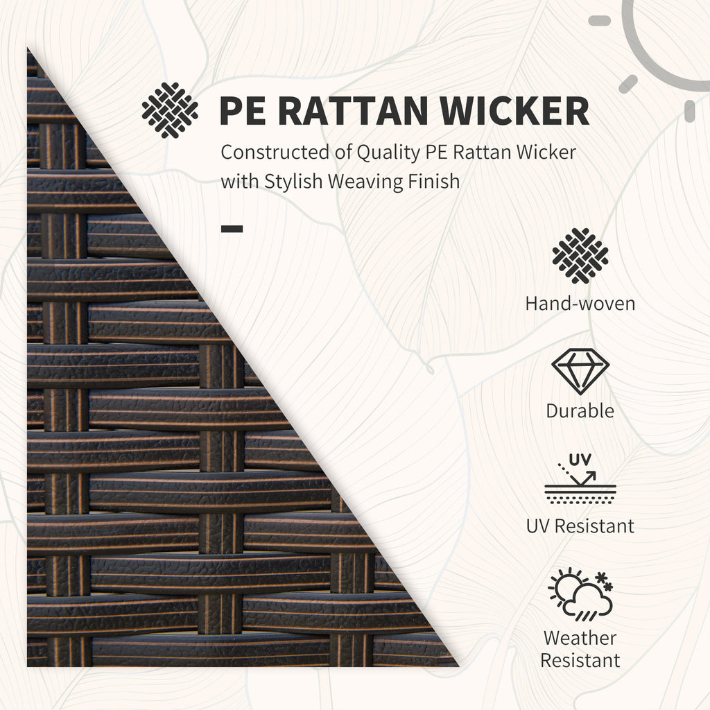This three-piece outdoor dining set from Outsunny is the perfect blend of style meets functionality. Made from high quality, hand woven PE wicker rattan with a solid metal frame underneath, this chair and table set is weather-resistant and highly durable. With a padded cushion and high-rise back and arms, each chair is extremely comfortable to provide you hours of relaxation time. Featuring a thick glass top, the table is easy to clean and maintain and will not stain, keeping it looking fresh for years to come. It’s ideal for catching up with a friend over coffee in the summer heat.