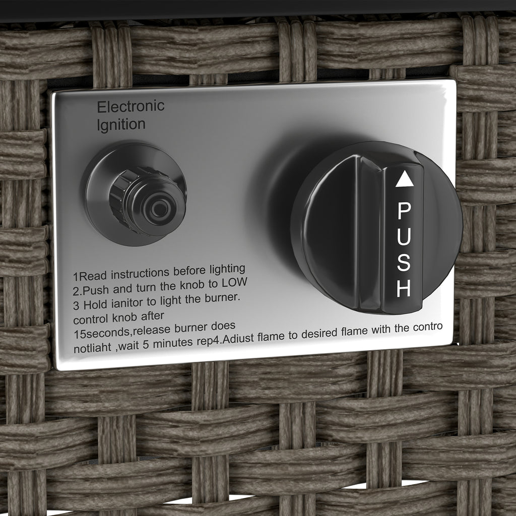 A place to keep warm when sitting with company and a place to enjoy garden warmth and ambiance all year-round: this Outsunny rattan fire pit table. The electric ignition system makes it easy to light, powered by LPG or propane gas. The garden table with fire pit featuring a 13 KW burner is powerful and produces a clean smokeless burn. Complete with a thermocouple to close the valve if the flame goes out for safety - no leaking gas.