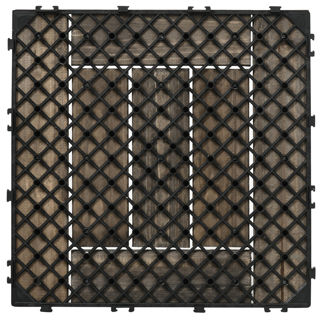 This Outsunny 27 piece tile pack is designed to transform your flooring, instantly. Fitted together, they'll meet demands of the floor, no matter if in a back garden space, a balcony area, patio and beyond. Each piece is made from solid wood for wearability, with PVC bottoms for slip resistance. 27 pieces cover a 2.5? area