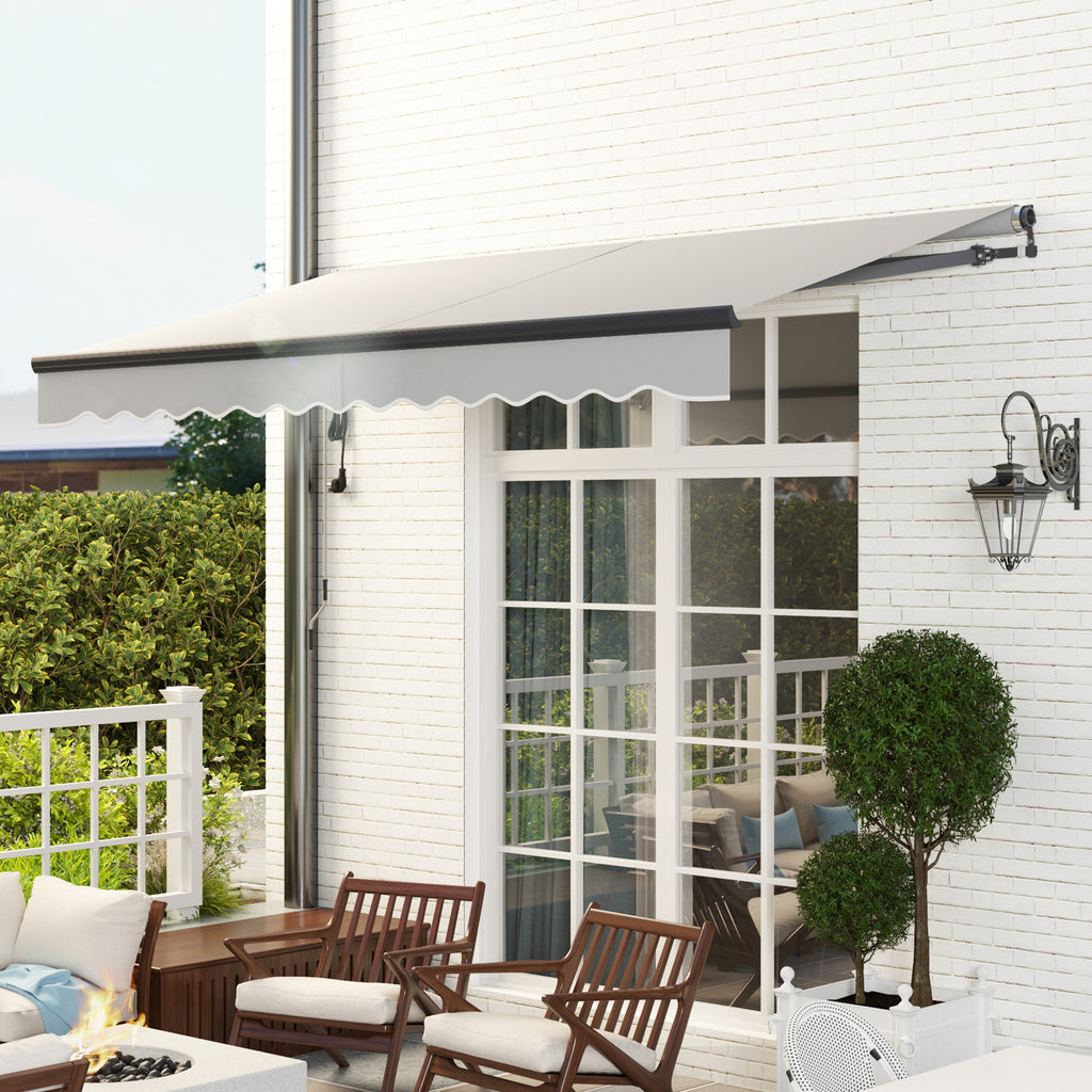Enjoy the outdoors in style with the Outsunny electric awning! Effortlessly extend this garden awning canopy with a remote control or manually twist the hand crank. Crafted from rust-resistant aluminium and 280g/m² polyester that blocks harmful UV rays, this retractable awning lets you lounge comfortably, adjusting the tilt from 45° to 85° to cast your shade over your patio or window.