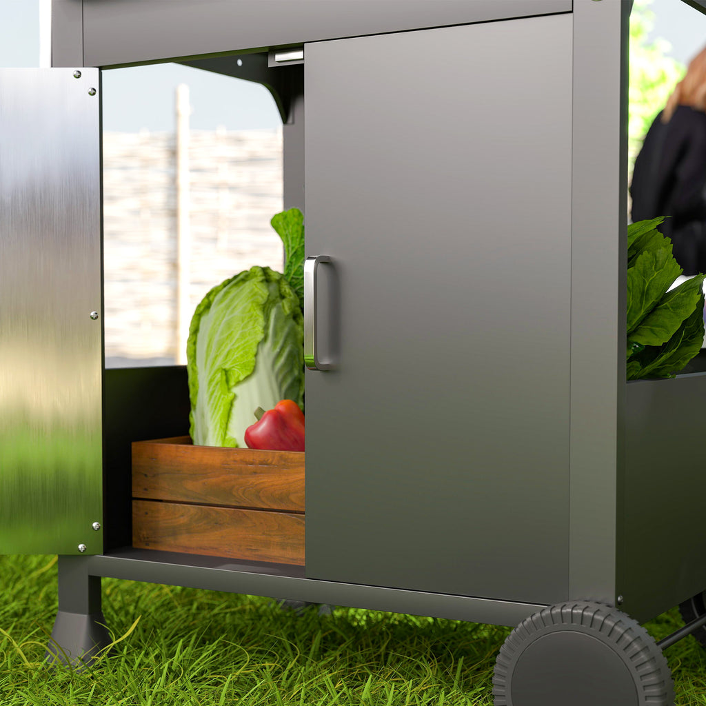 • Weight Capacity: (grill grate) 10 kg, (bottom shelf) 20 kg, (side shelf) 5 kg