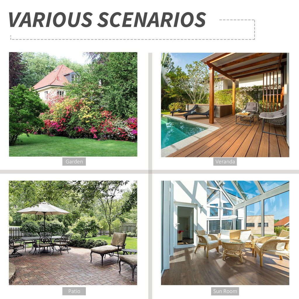 These four Outsunny outdoor chairs combine design and function. The frame made from steel, both are wrapped in PE rattan for extra style and durability. They are also weather-resistant. The foldable design makes it easy to store both chairs when needed, storage when not in use. Both chairs are also easy to clean and maintain, meaning minimal effort for you and more time to enjoy outdoors.