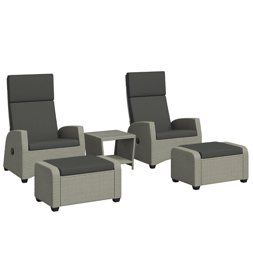 Outsunny 5 PCs Rattan Garden Furniture Set with Reclining Chairs, Grey