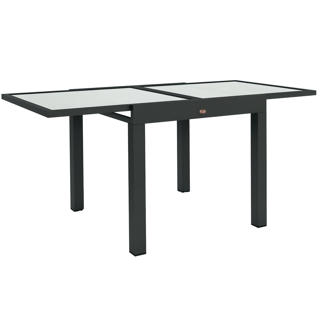 Want a place to put on barbecues and cosy campfires? Like to read in the breeze? Need a table? Outsunny has a patio dining table to help you put on the picnic of your dreams. The robust aluminium frame with quality tempered glass table top is stable and easy to maintain. Also add enduring beauty, style and grace to your area with this essential part of any outdoor living space like the balcony, garden, or deck. Put some party into your patio with Outsunny.
