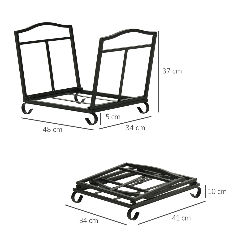 A simple and practical way to store your wood logs starts with this Outsunny log holder basket. Made from powder coated metal for a strong structure, it's made into an open and spacious design to hold lots of wood - up to 50kg worth. Foldable design is easy to store. The bottom shelf is widely slated, so there's no water build up, with four scroll feet elevate it to keep wood aerated - keeping wood stored to maximum burning efficiency. Finished with high sides in a simple line design.• Four feet lift off the ground, helping to keep logs dry and aerated