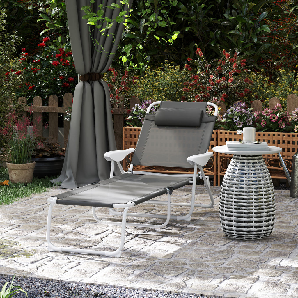 Our new foldable lounge chair is strong, comfortable and built to last! This foldable sun lounger is great for all types of outdoor and indoor use. The 4-level adjustable backrest helps you find the most comfortable positions. The breathable and comfortable fabric will keep you cool. The soft and supportive headrest enhances your relaxation. A great addition to your patio, garden, terrace and more.