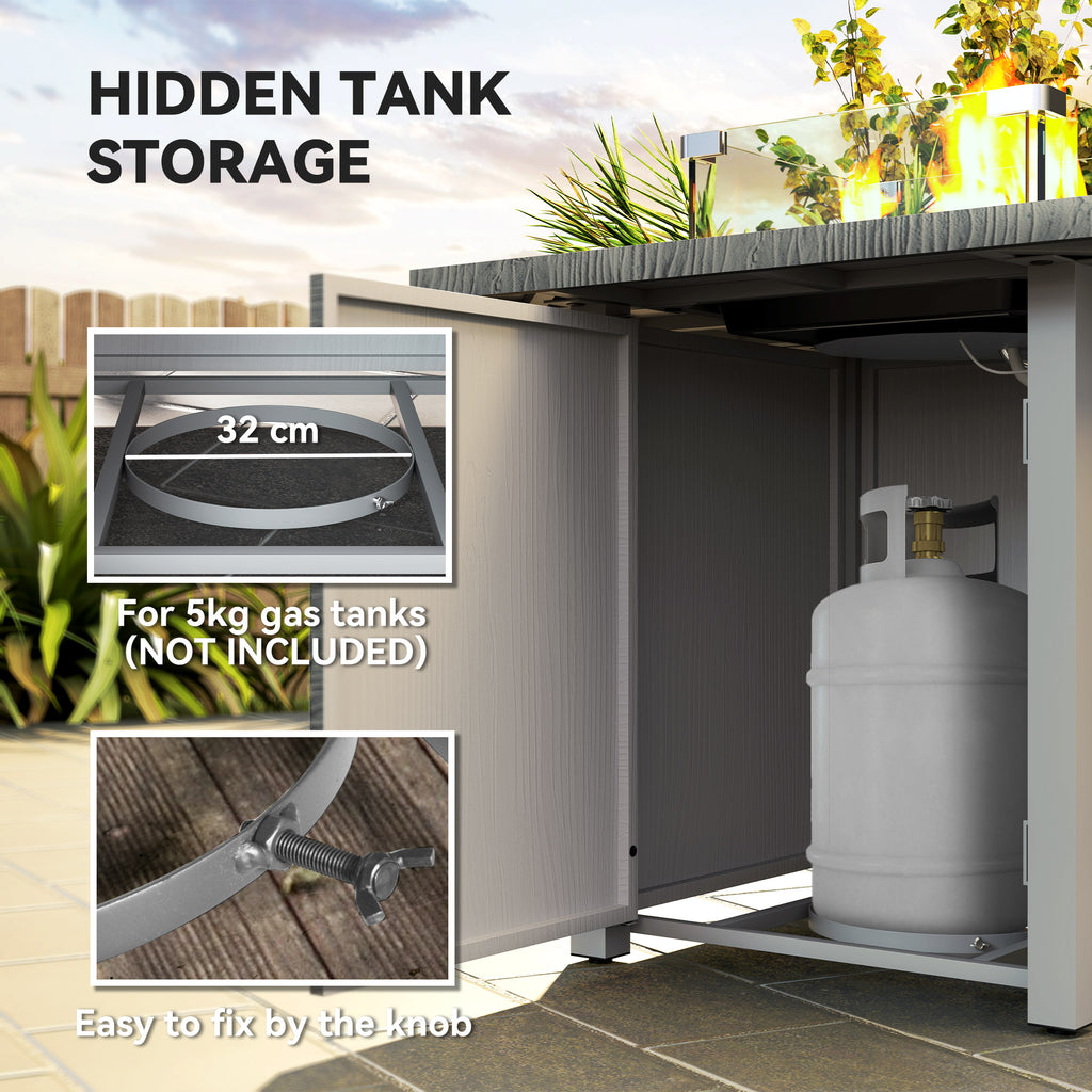 A place to keep warm AND somewhere to dine from outdoors - this Outsunny fire pit table. Use the 40,000 BTU burner to create a clean-burning flame - the amount of ash is low. The glass beads help retain warmth, whilst adding elegance. The glass case shields the open flame for safety. Protective cover included.