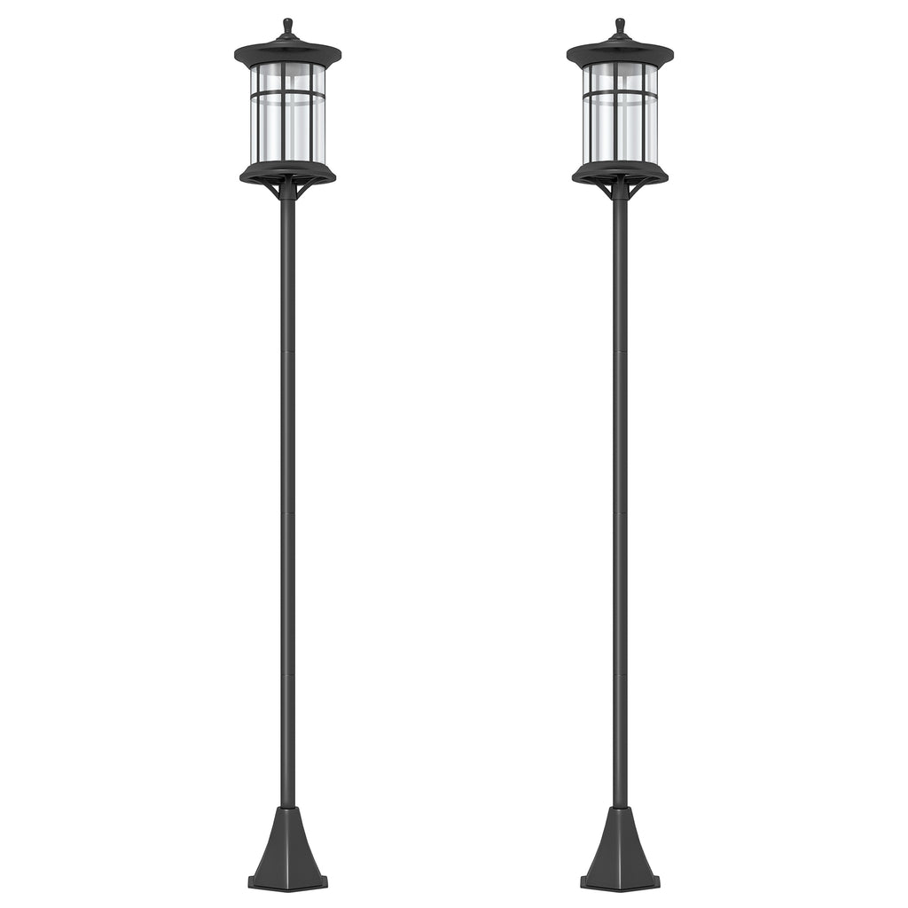 Lighting when the sun goes down - in traditional form with this set of two Outsunny post lights. Stainless steel structure of both, with IP44 rating for safety outdoors. The traditional look brings a bold and beautiful look to your outdoors. Each are fitted with a solar-powered: charges with eight hours of sunlight, and provides six hours of illumination. Both solar post lights come with bottom stakes to insert into the ground.